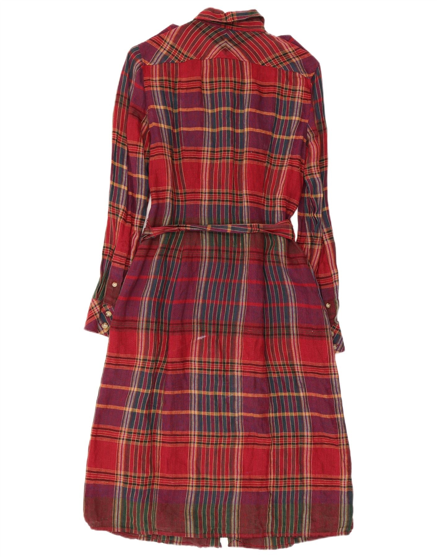 RALPH LAUREN Robe chemise militaire pour femme US 4 petit lin à carreaux rouge