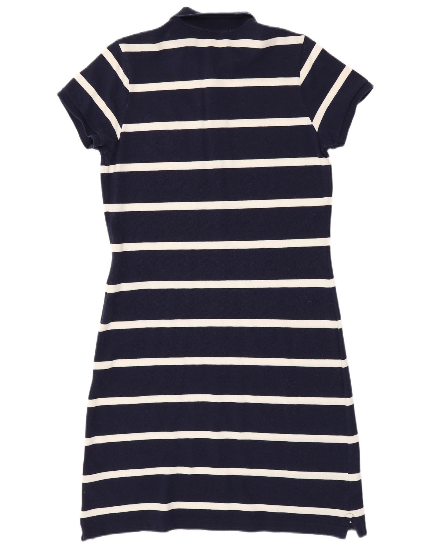 RALPH LAUREN Womens Polo Dress UK 14 Large Navy Blue Striped Cotton