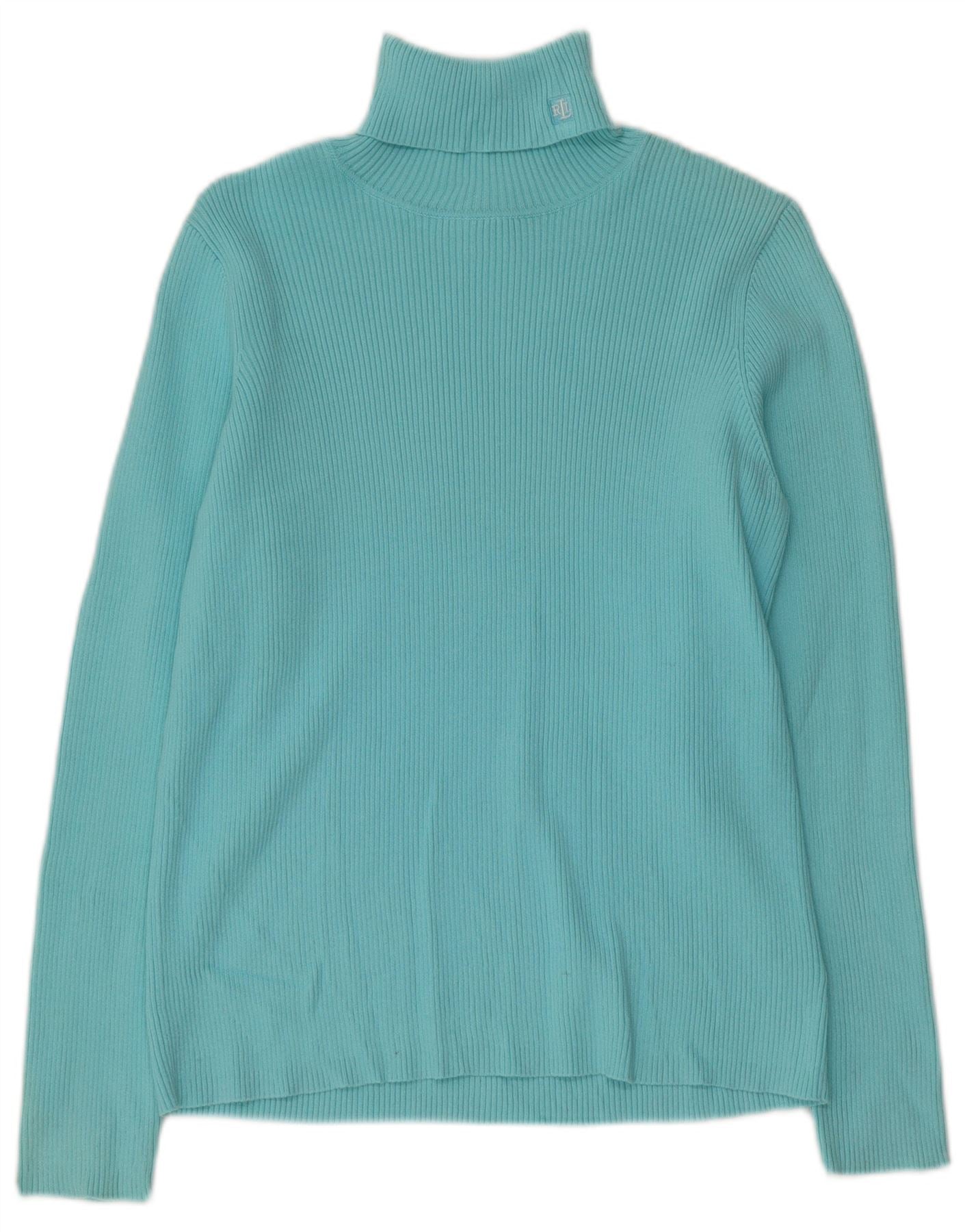 RALPH LAUREN Pull col roulé pour femme UK 14 Large Bleu Coton