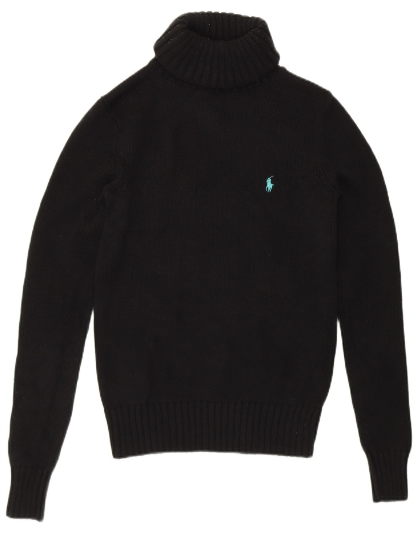 RALPH LAUREN Pull col roulé pour femme UK 8 Small Noir Coton