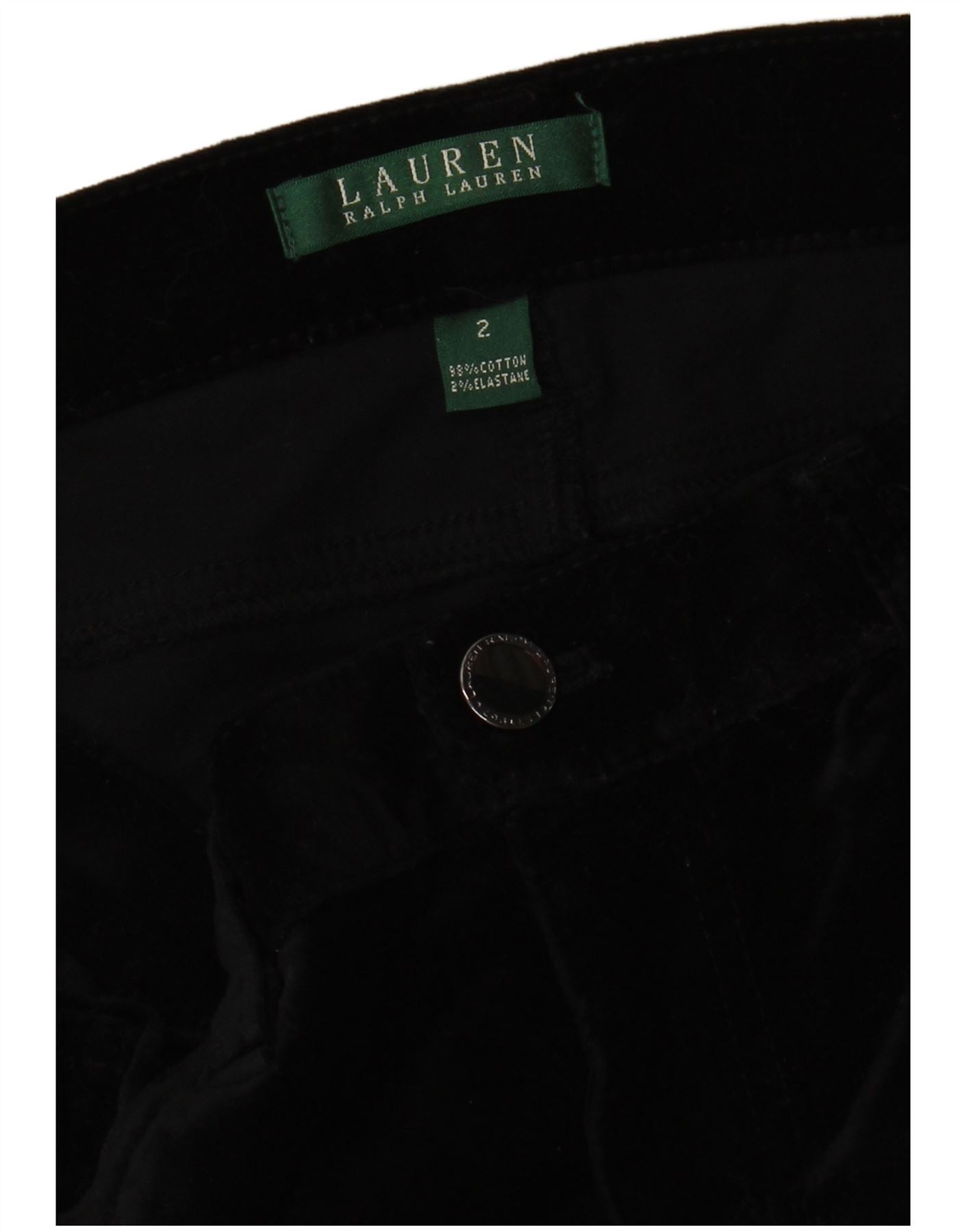 RALPH LAUREN Pantalon slim en velours côtelé pour femme US 2 XS W30 L30 Coton noir