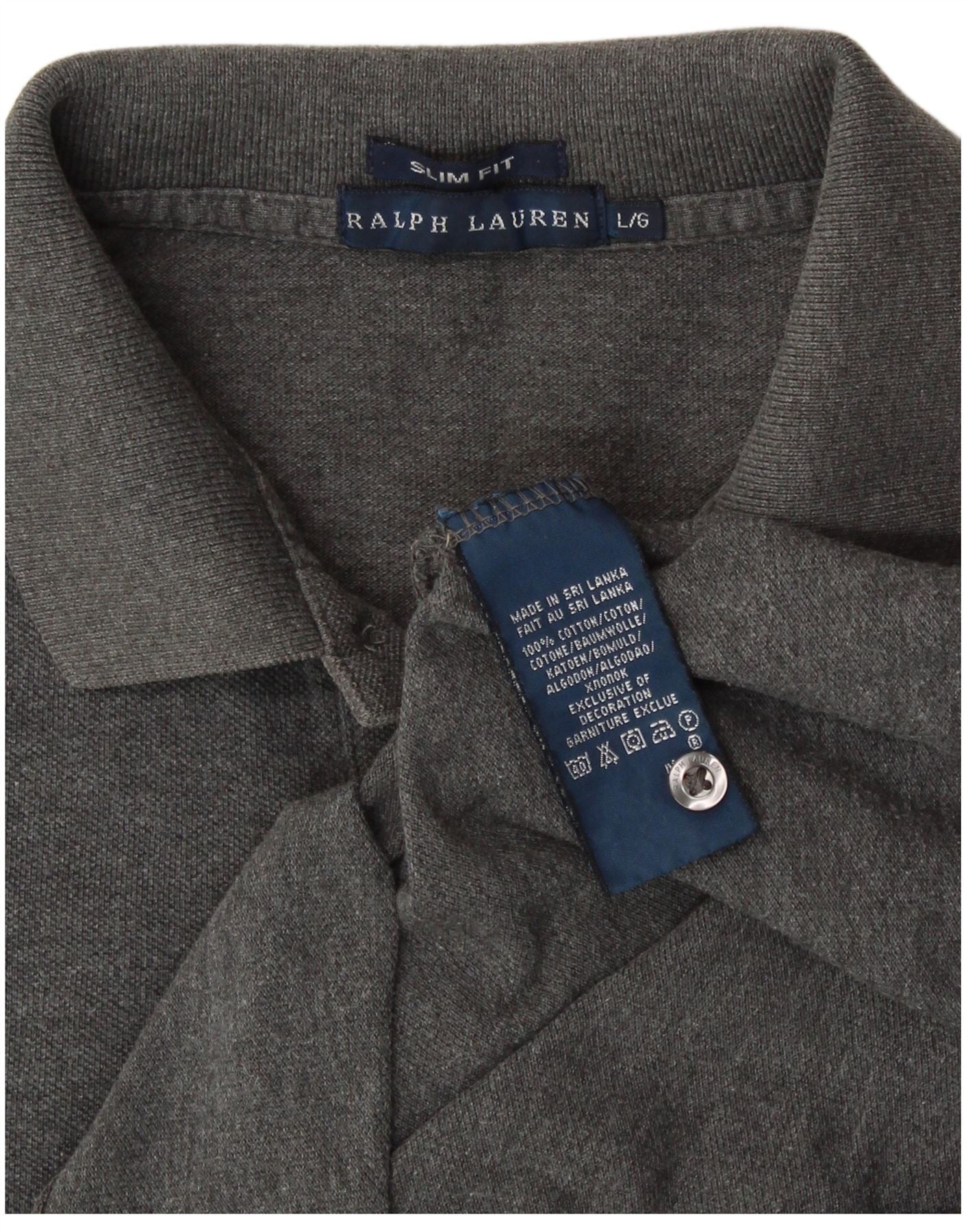 RALPH LAUREN Polo Slim Fit pour Femme UK 14 Grand Coton Gris