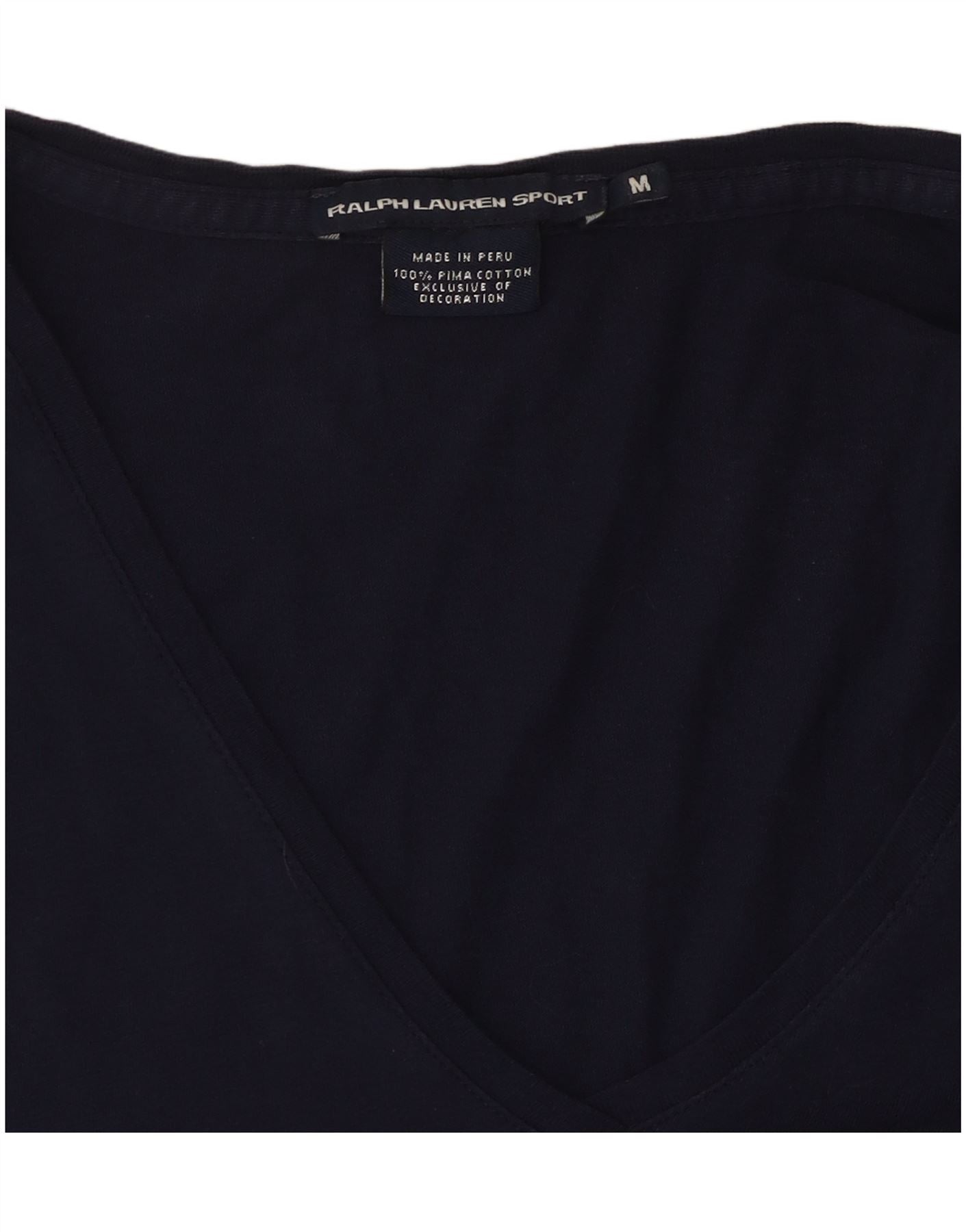 RALPH LAUREN T-Shirt Femme Top UK 12 Bleu Marine Moyen Coton