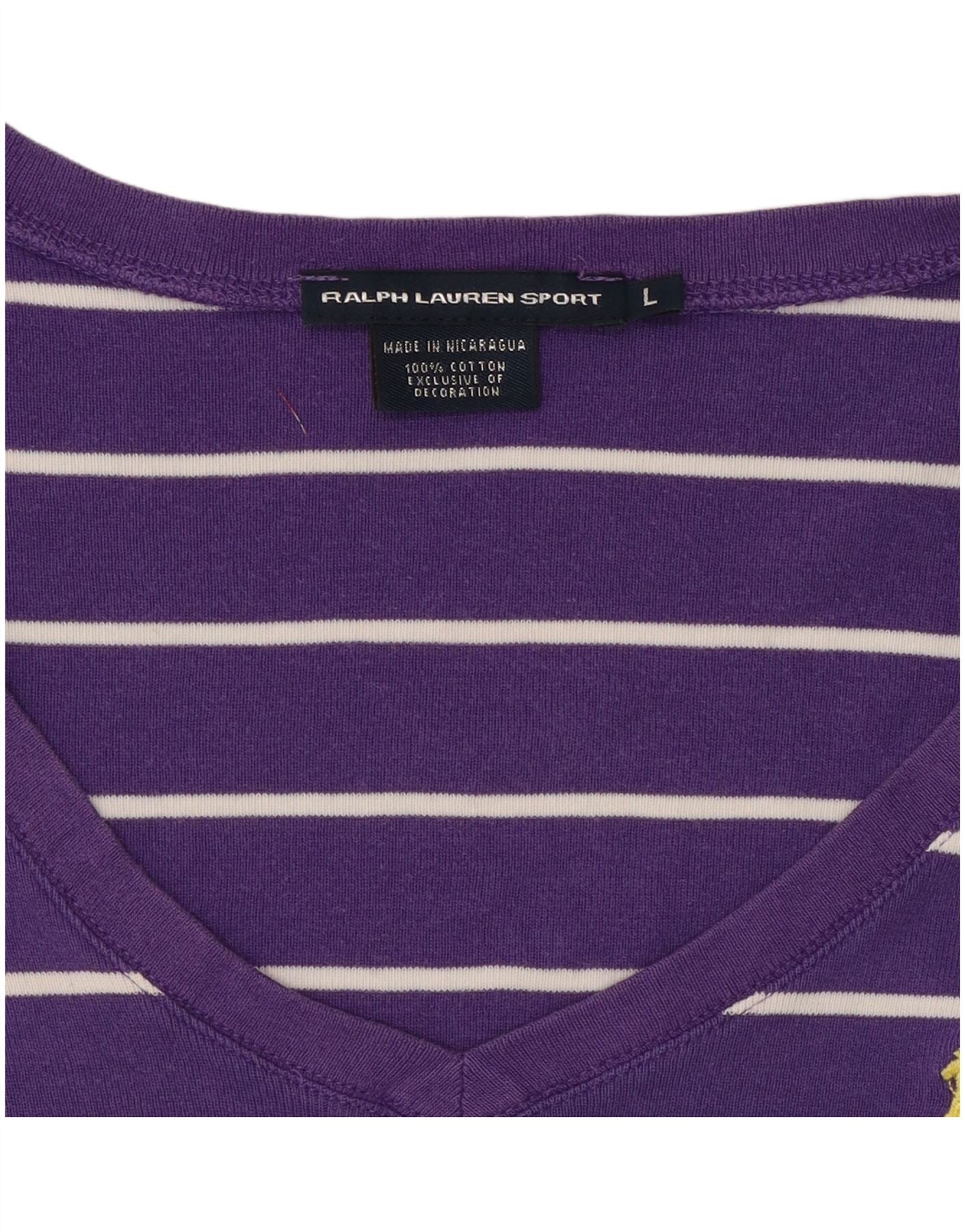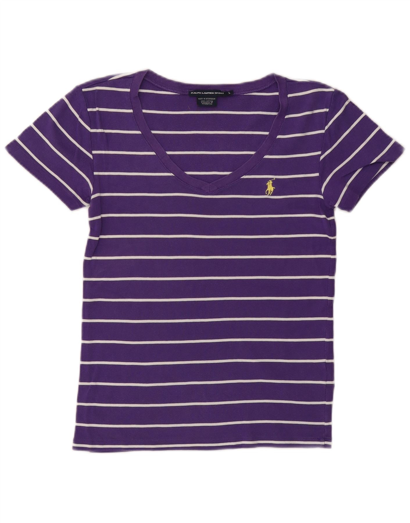 RALPH LAUREN T-Shirt Femme Top UK 14 Grand Coton Rayé Violet