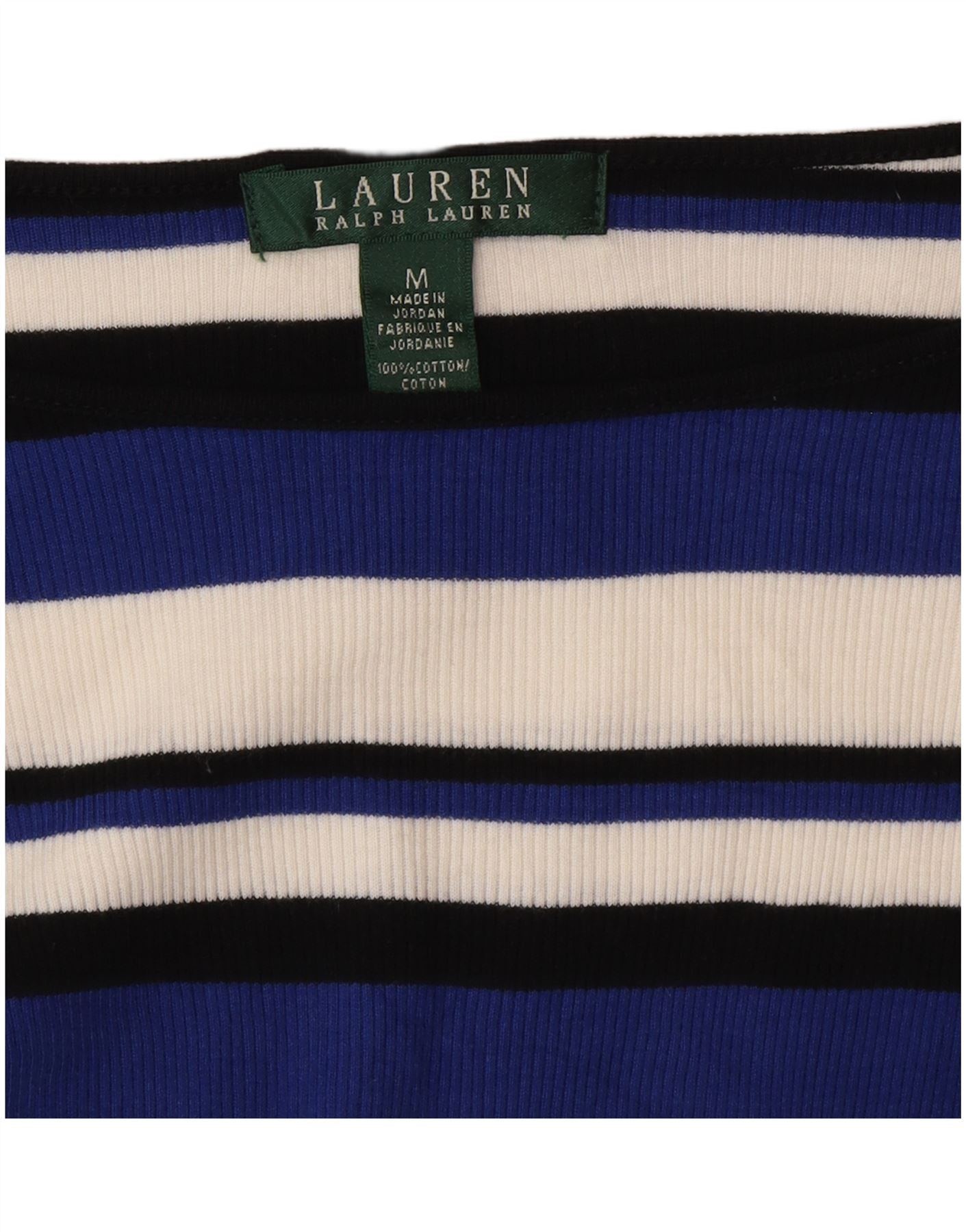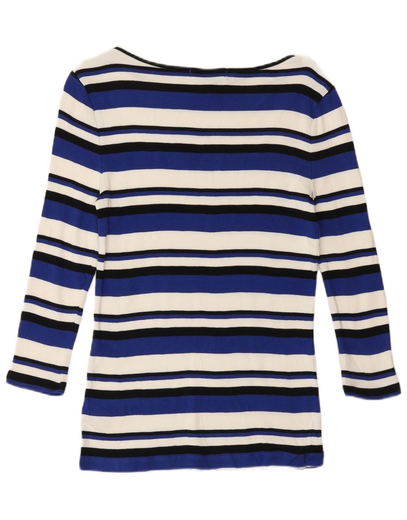 Ralph Lauren Haut Femme Manches 3/4 UK 12 Coton Rayé Bleu Moyen
