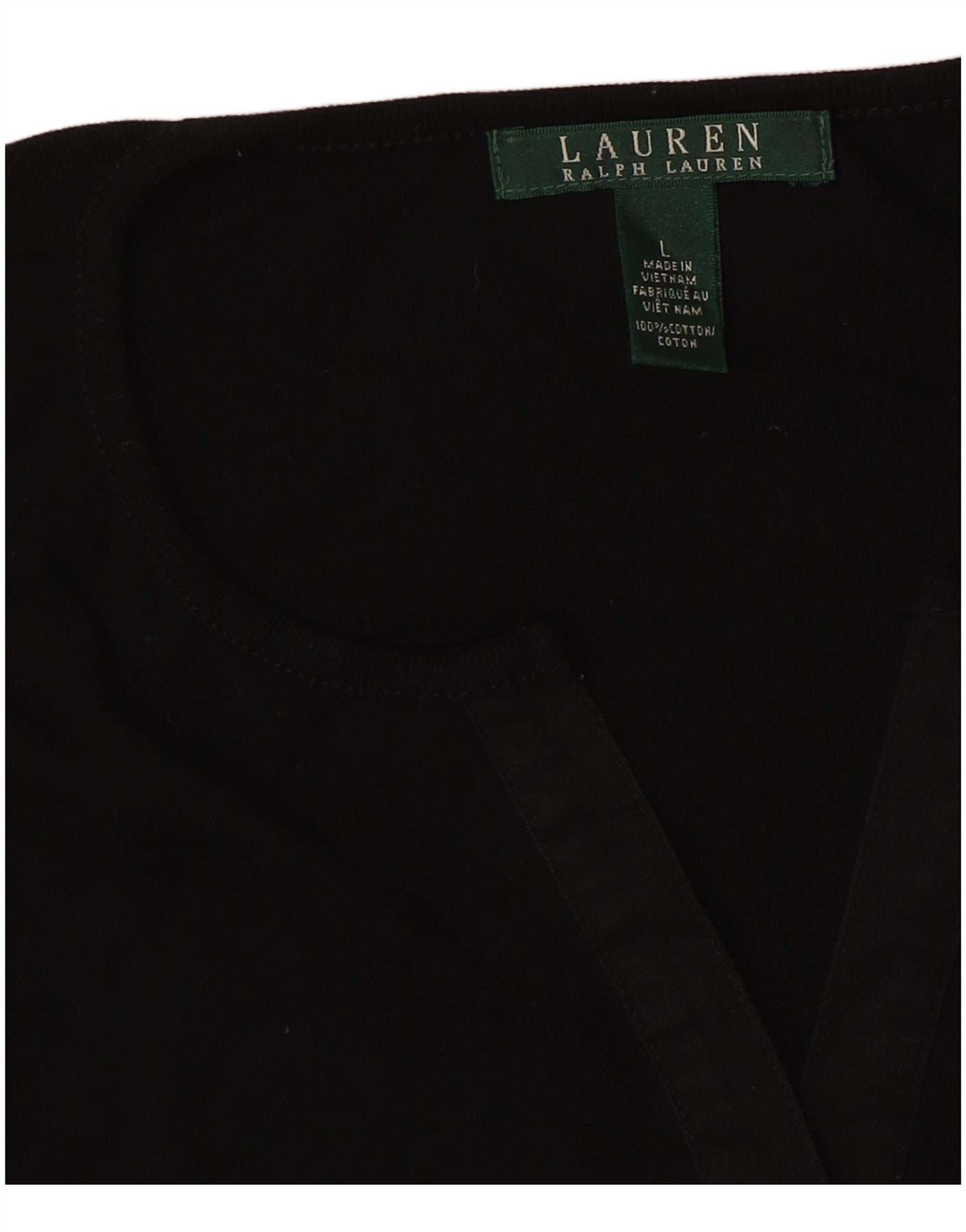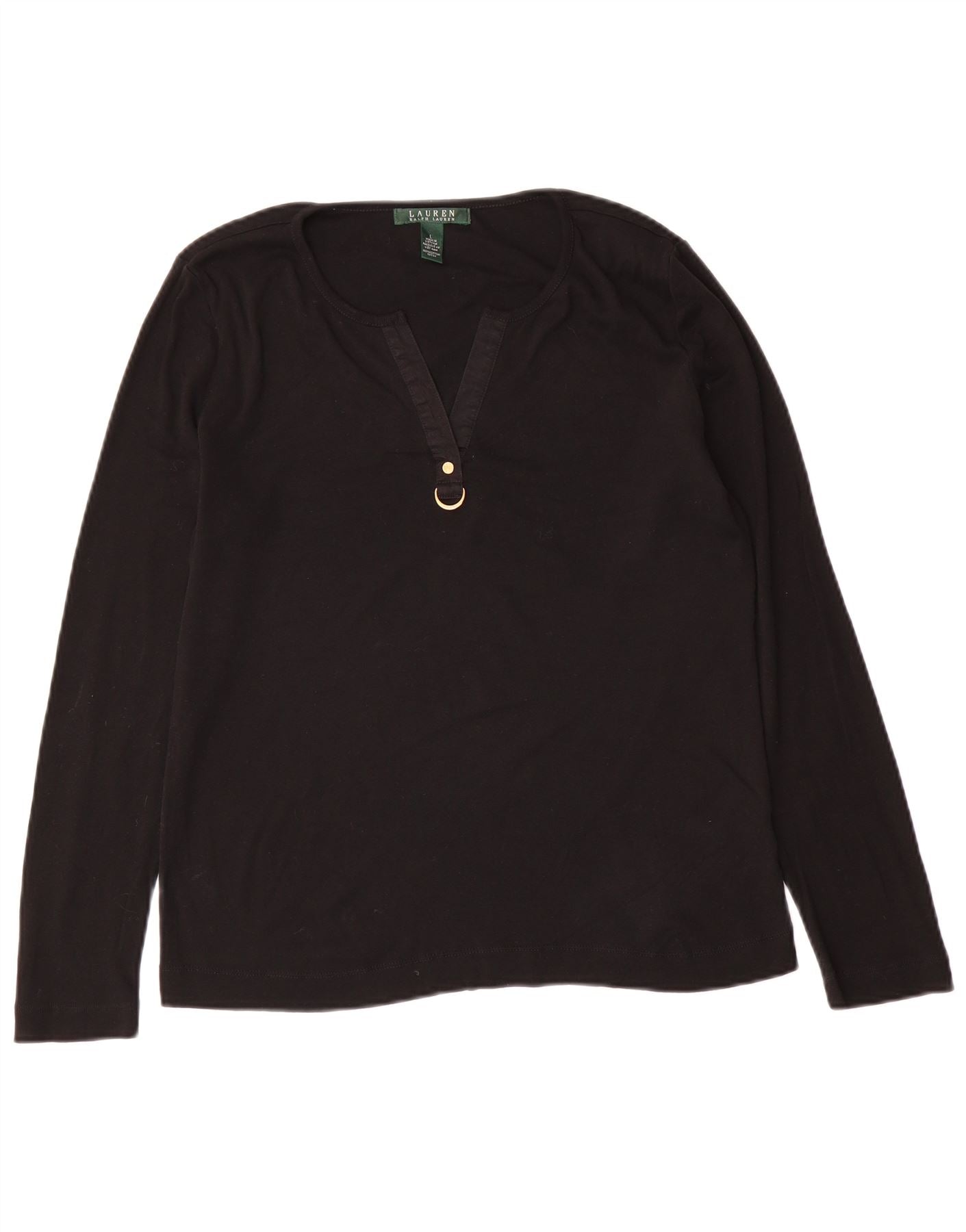 RALPH LAUREN Haut Femme Manches Longues UK 16 Grand Coton Noir