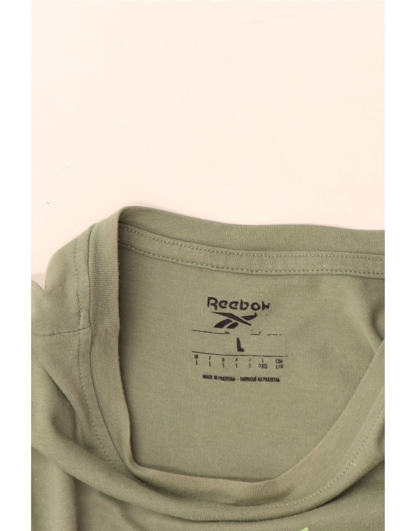 Reebok T-Shirt Graphique Homme Vert Large Coton