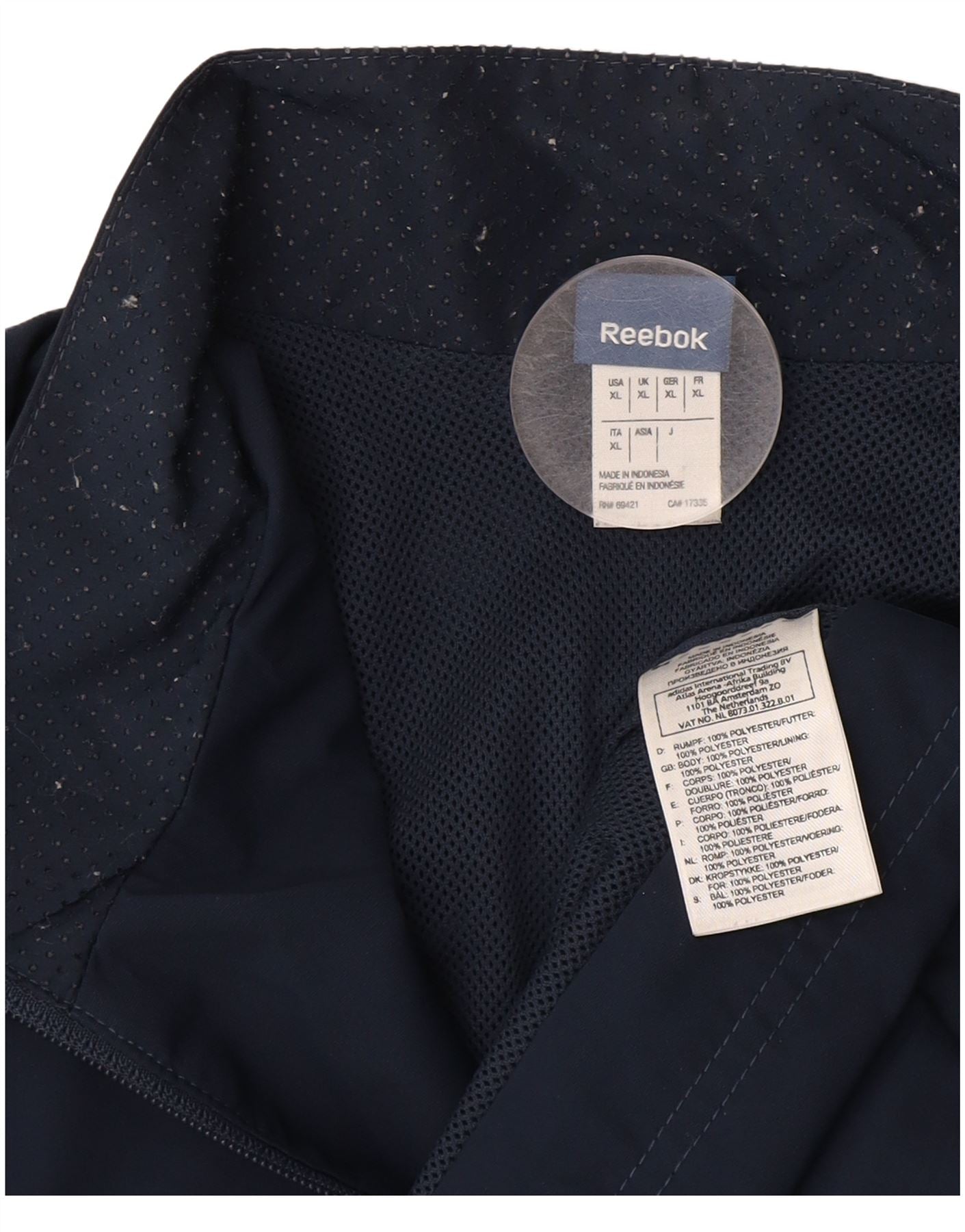 REEBOK Veste de Survêtement Homme XL Bleu Marine Polyester