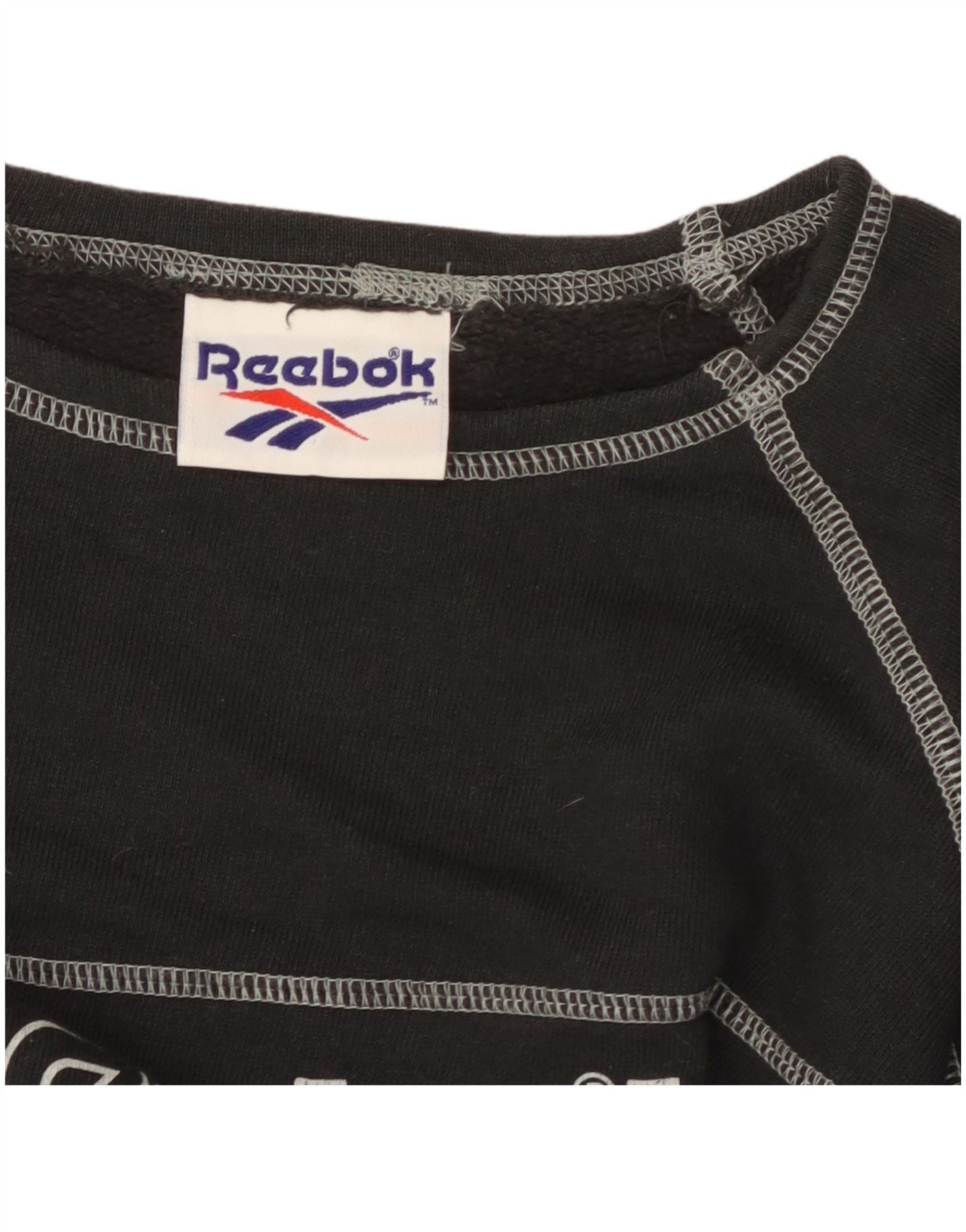 REEBOK T-shirt court graphique pour femme UK 14 Noir moyen Coton