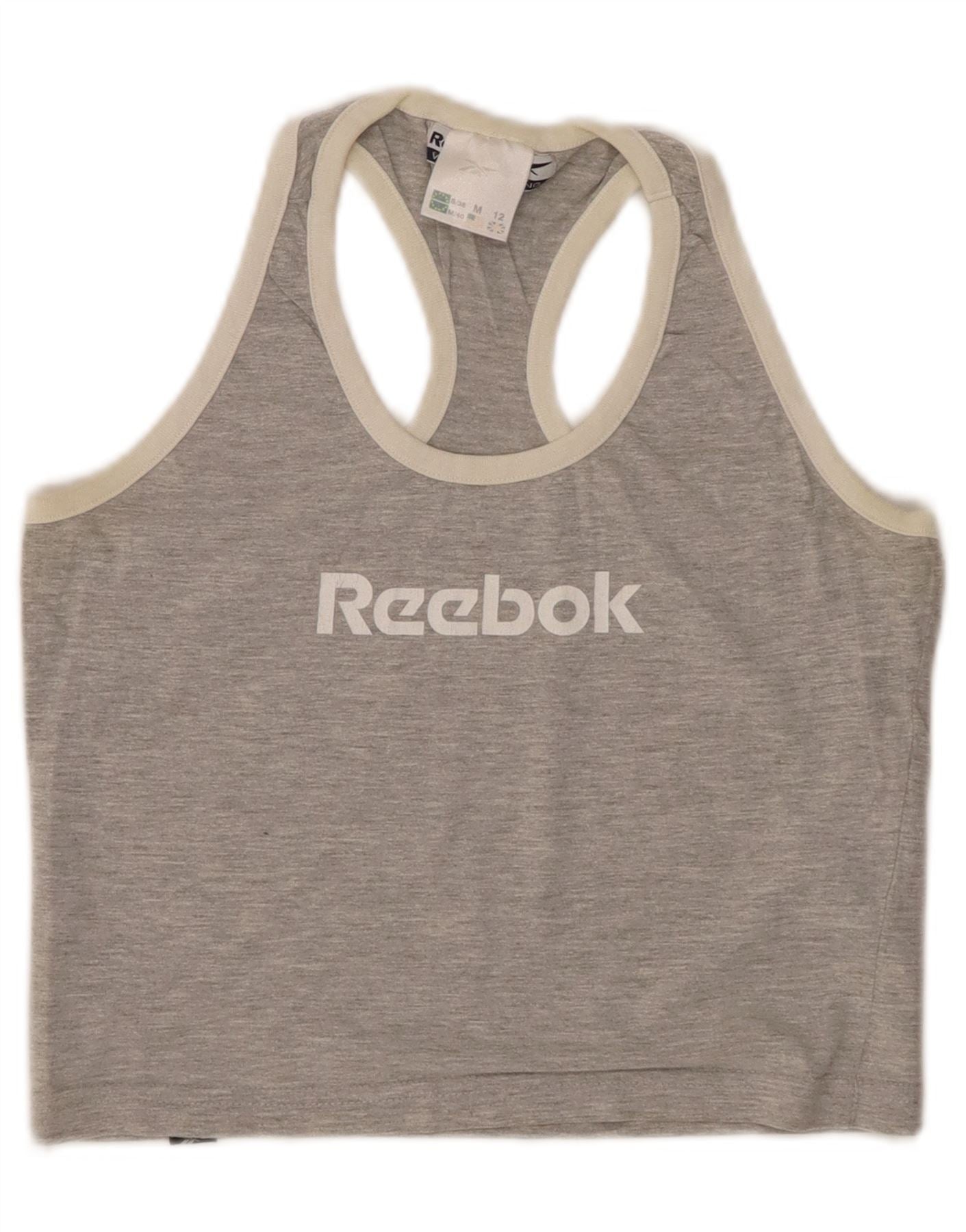 REEBOK Débardeur court graphique pour femme UK 12 Gris moyen en coton moucheté