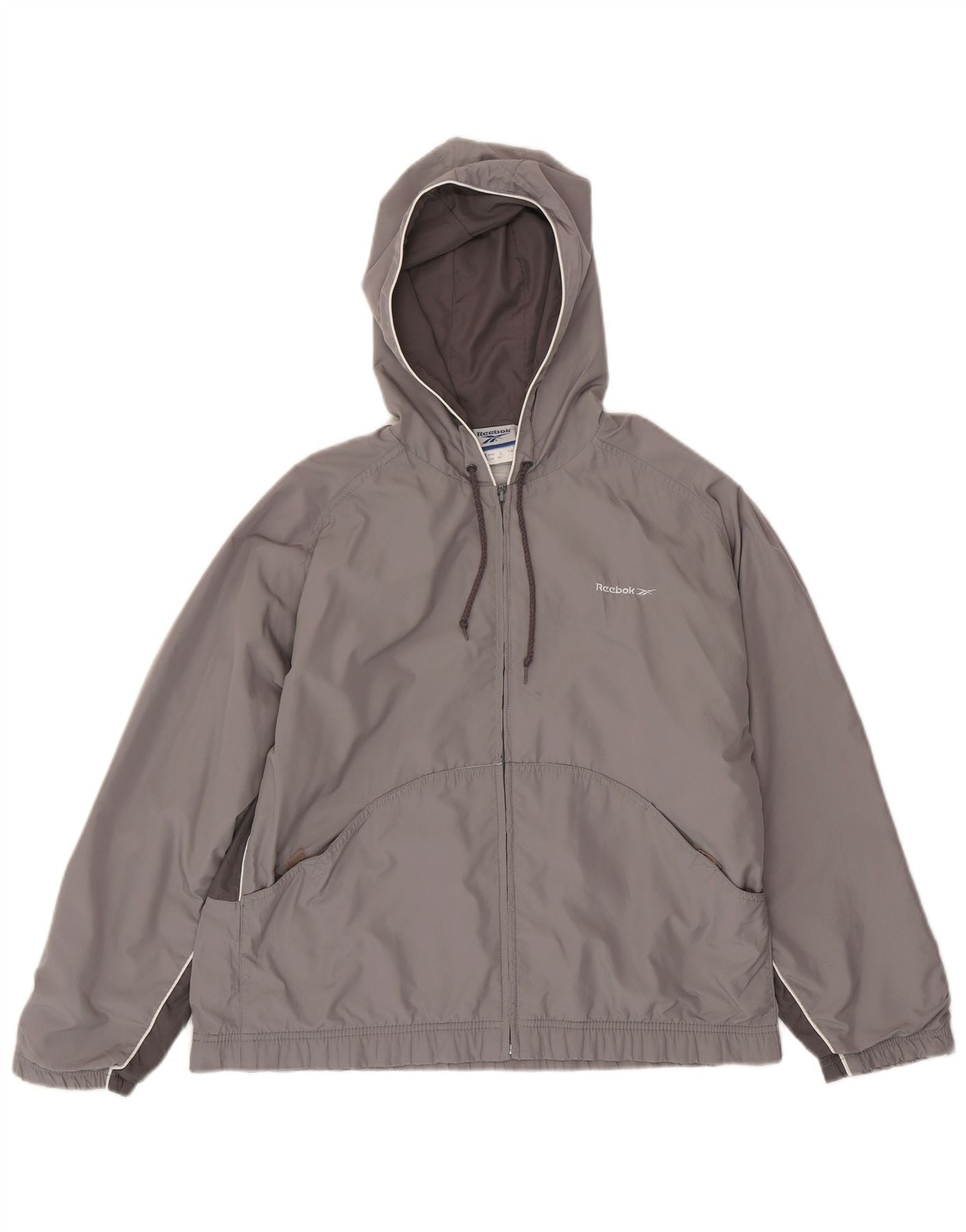 Reebok Veste bomber à capuche pour femme UK 44 Large Gris Colorblock Polyester