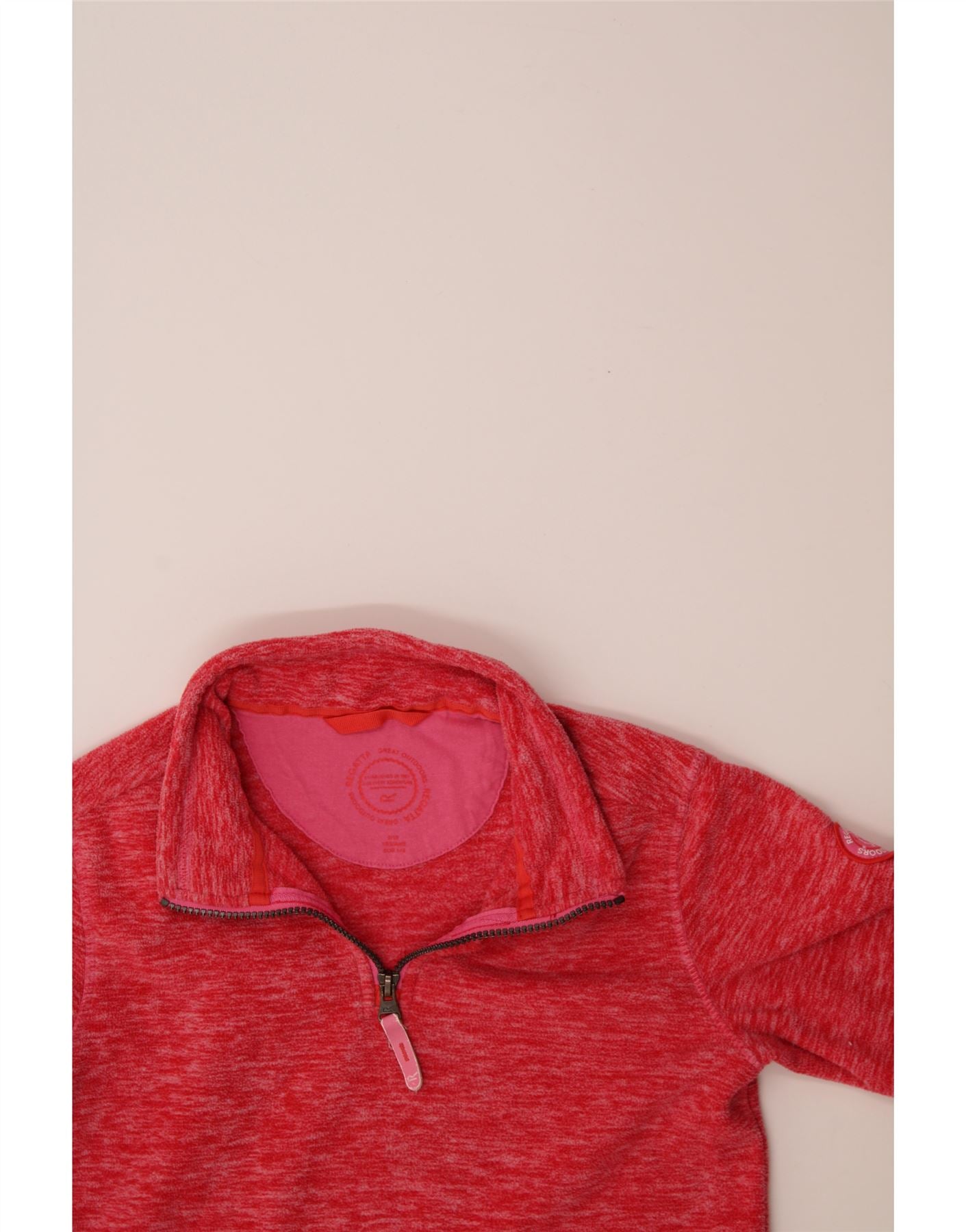 REGATTA Girls Zip Neck Fleece Jumper 9-10 Years Red Flecked Polyester