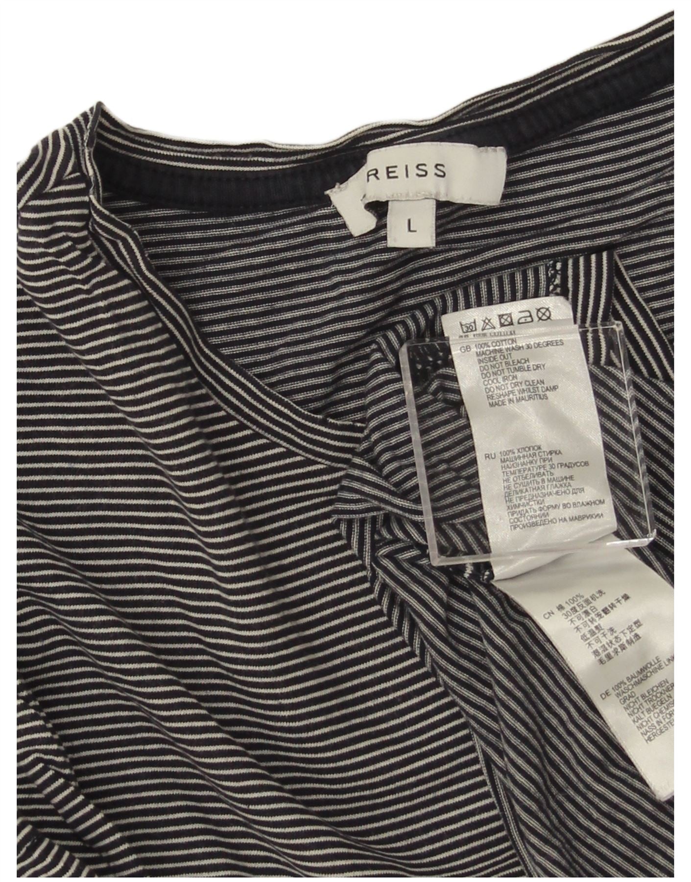 REISS T-Shirt Femme Top UK 16 Large Bleu Marine Coton à Rayures
