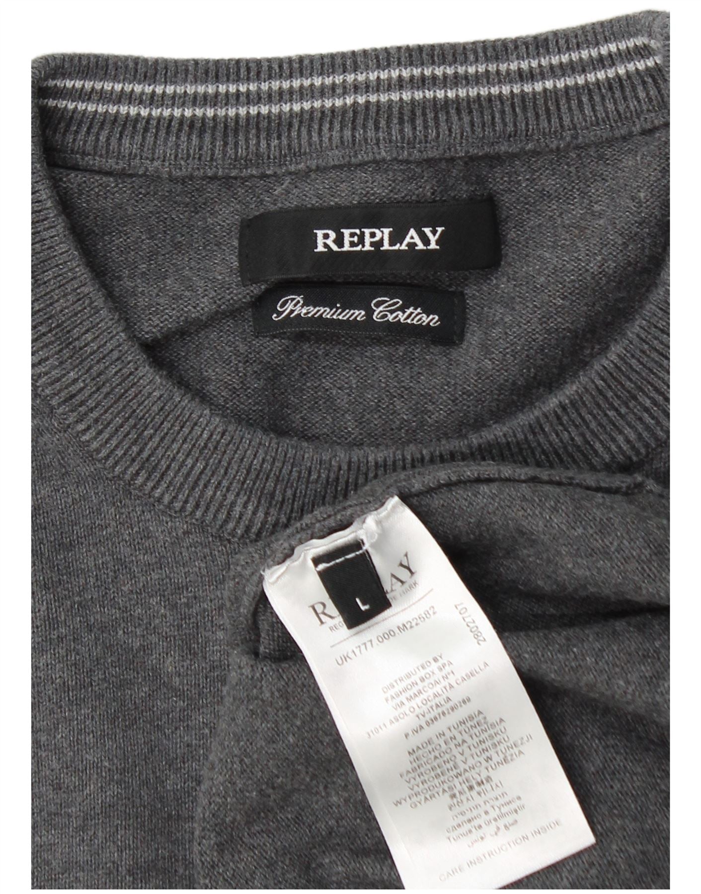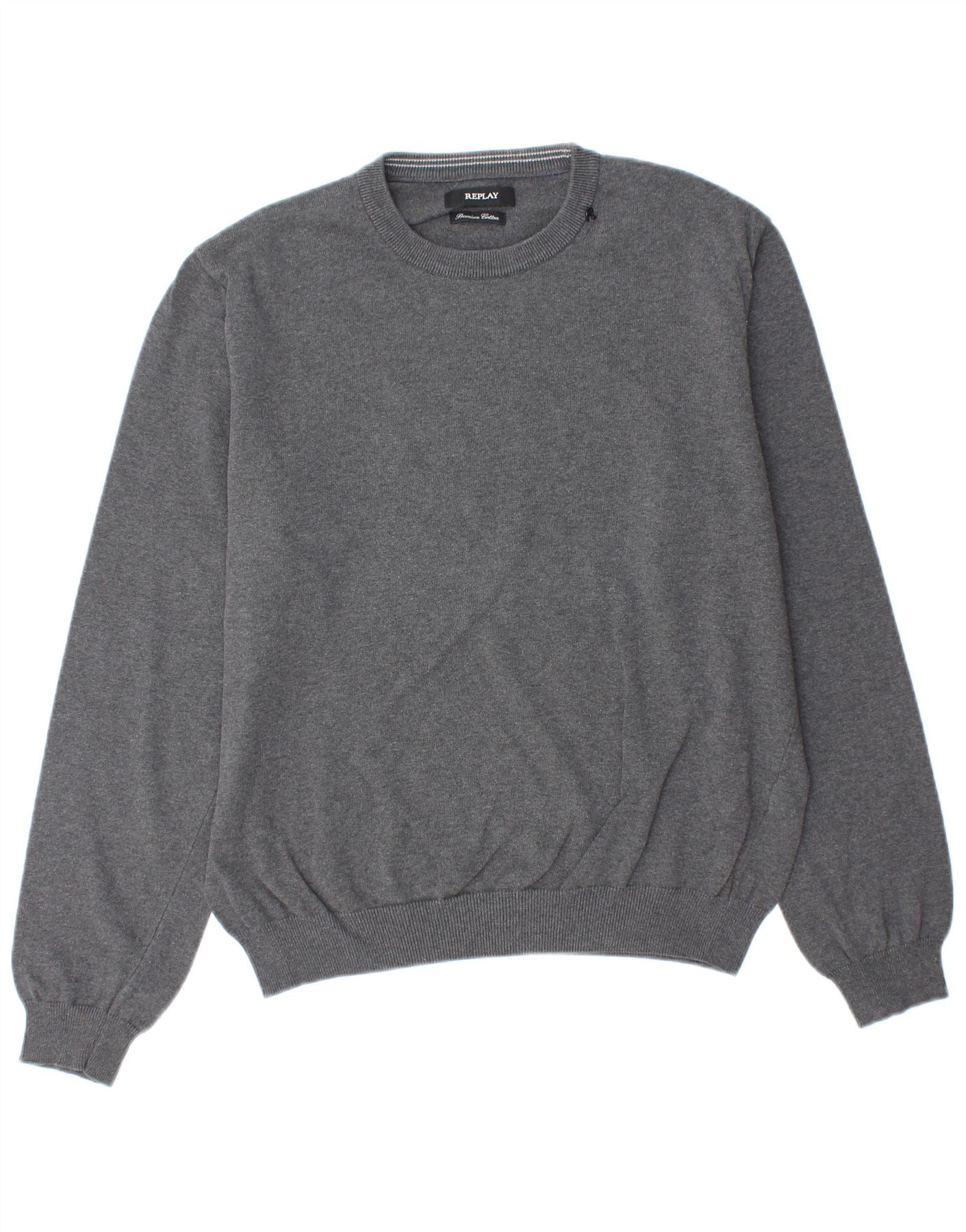 REPLAY Pull Col Rond Homme Large Gris Coton
