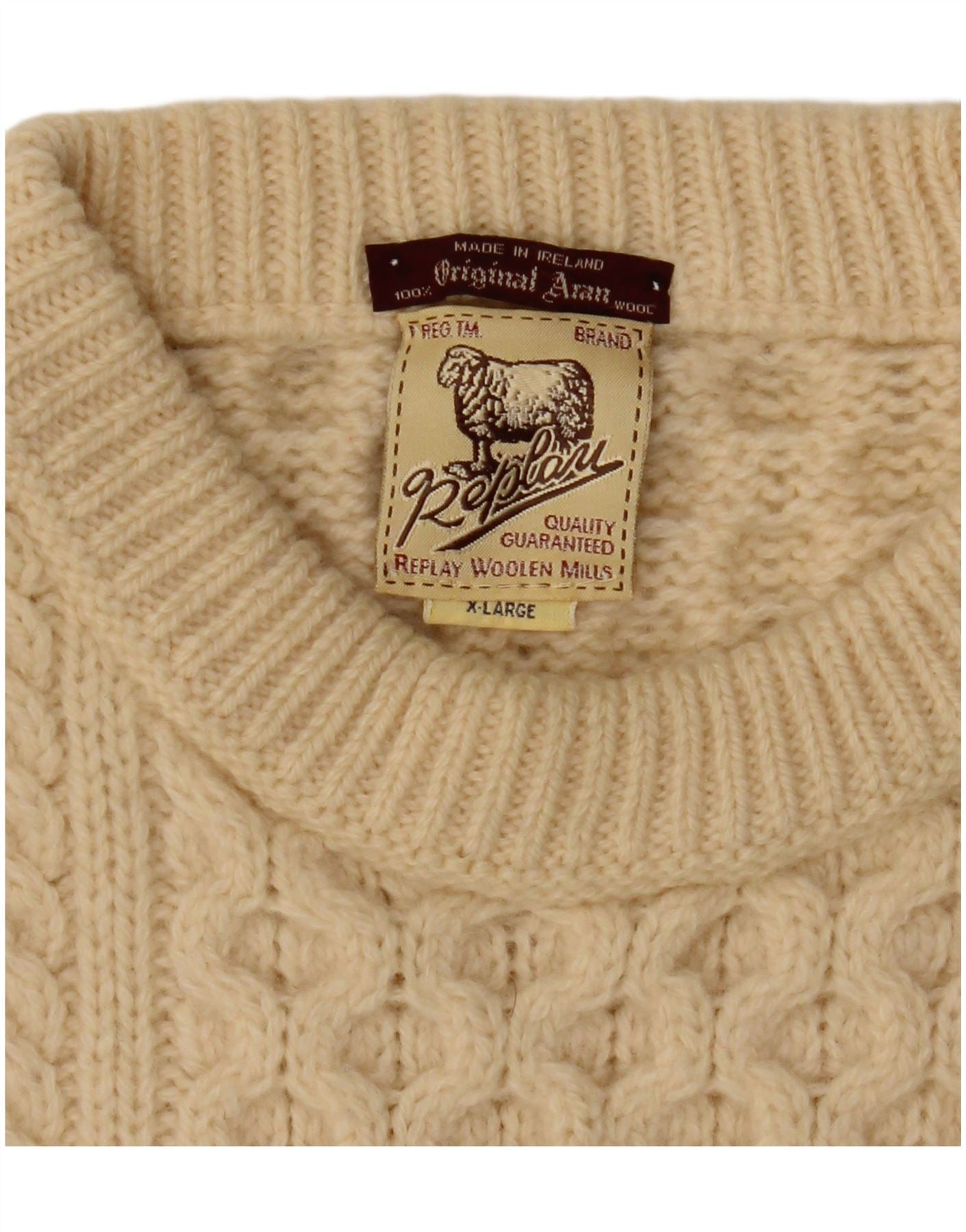 REPLAY Pull Col Rond Homme XL Laine Blanc Cassé