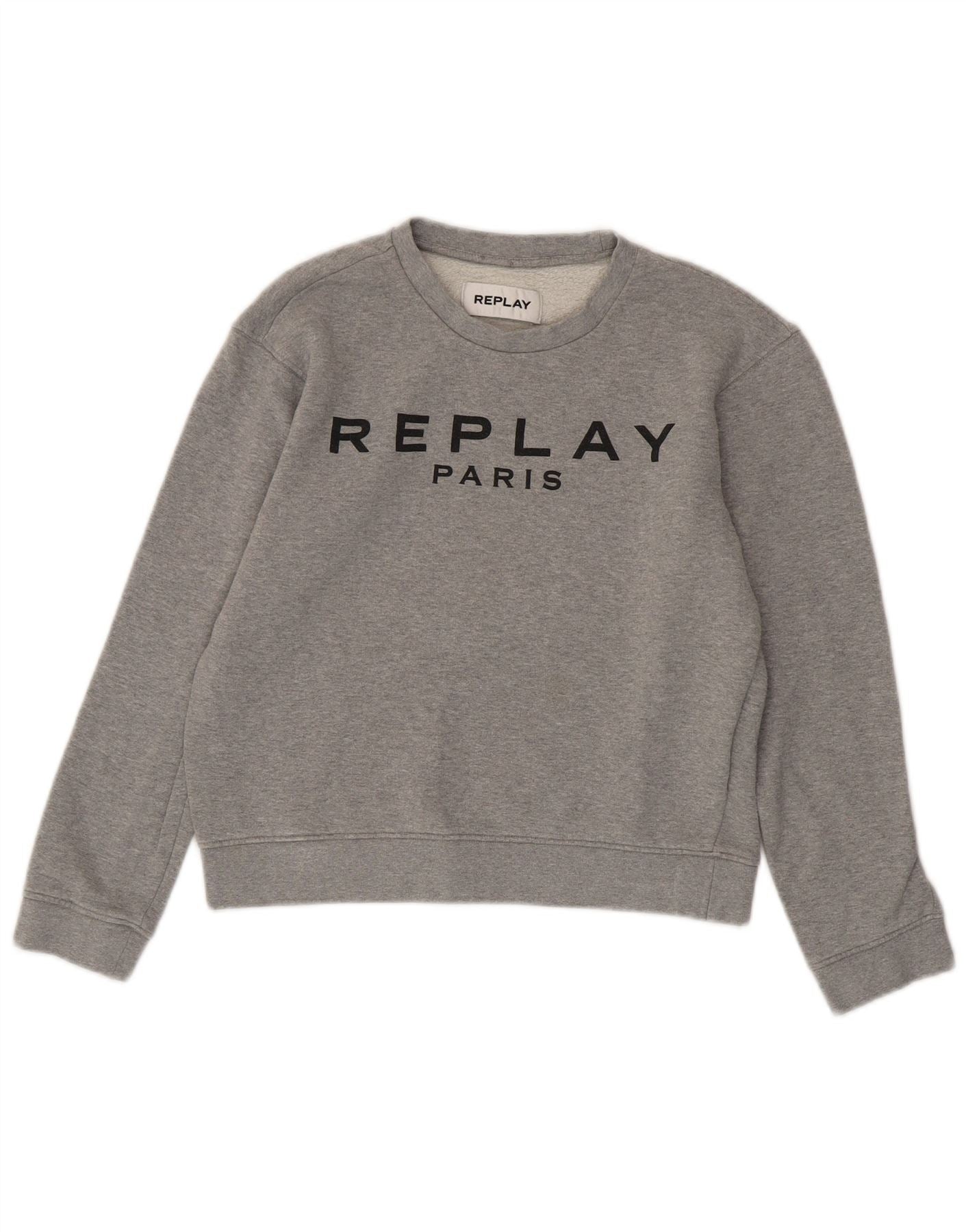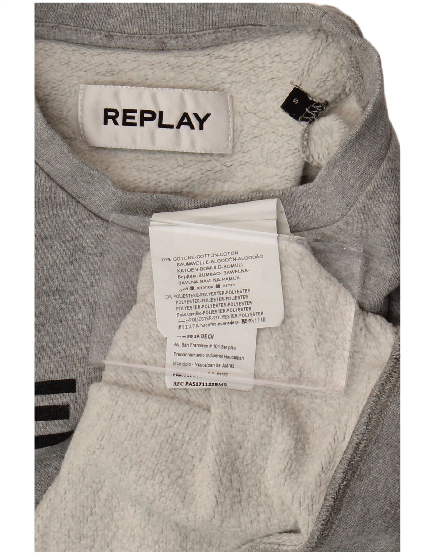 REPLAY Femme Paris Crop Graphic Sweatshirt Jumper UK 10 Small Gris Coton