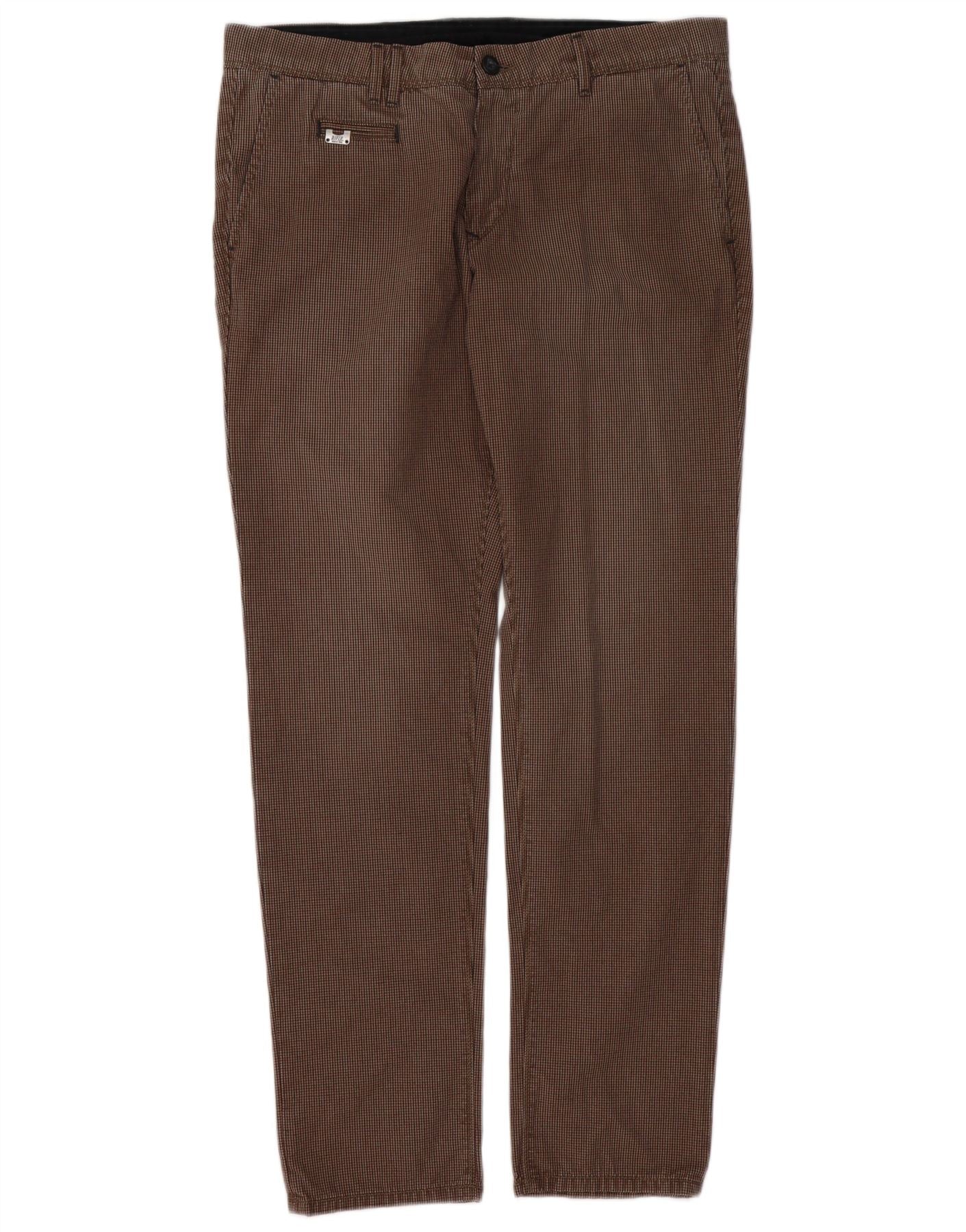 RIFLE Pantalon Chino Slim Homme W33 L32 Marron Pied de Poule Coton