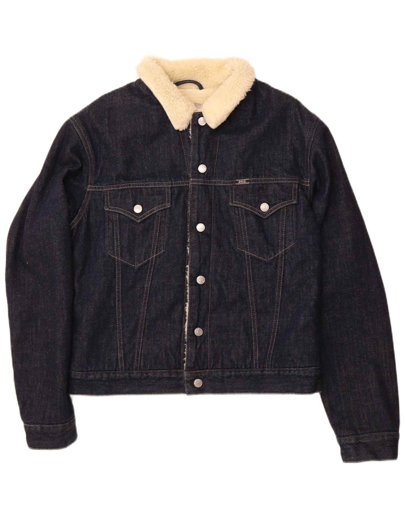RIFLE Veste Sherpa en jean pour femme UK 16 Large Bleu marine en coton