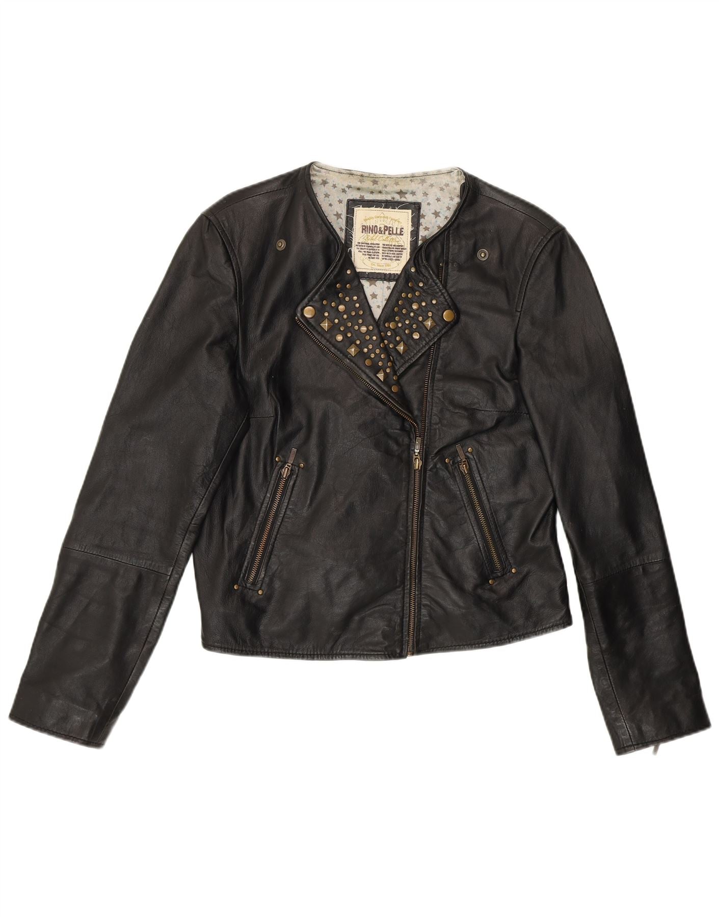 RINO & PELLE Veste en cuir de motard court pour femme UK 12 Cuir noir moyen