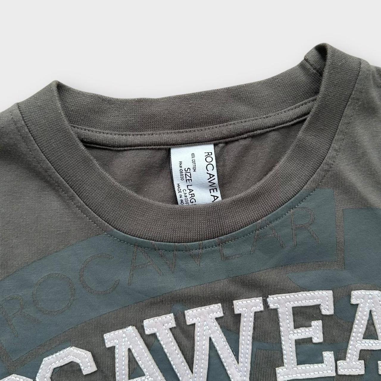 T-shirt hip hop Rocawear Y2K du début des années 2000 en gris avec imprimé et broderie sur la poitrine