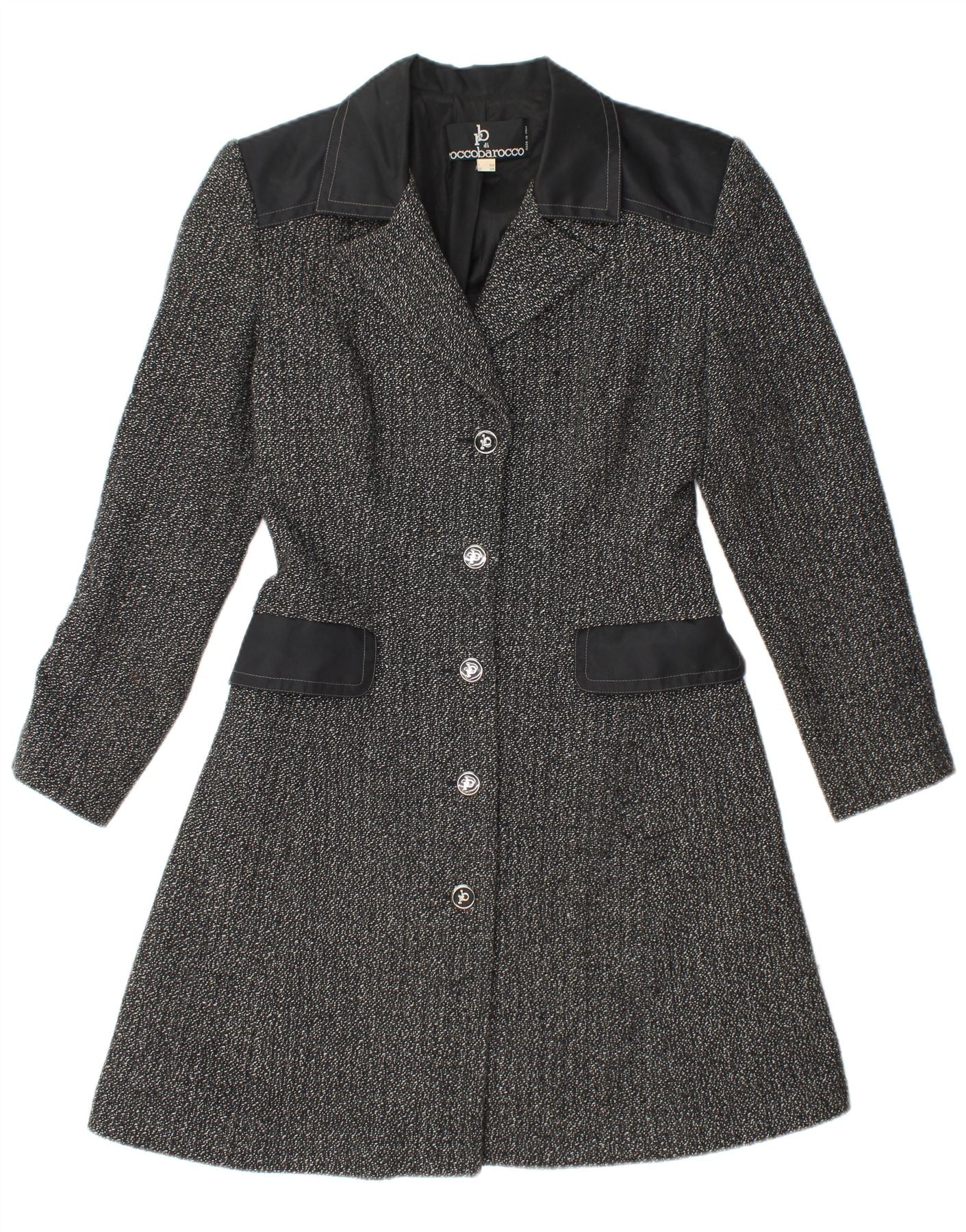 ROCCOBAROCCO Pardessus Femme IT 42 Laine Mouchetée Noir Moyen