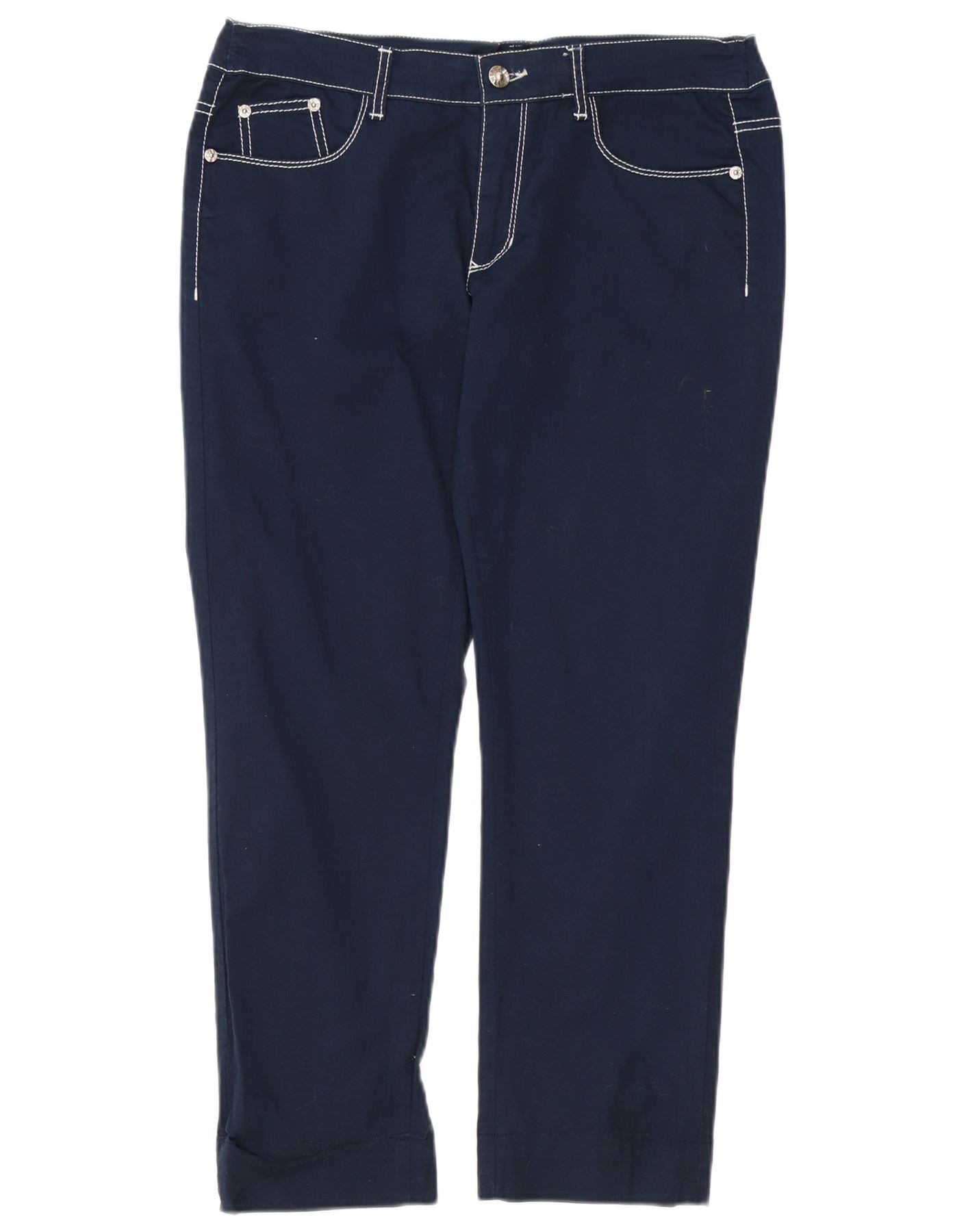 Home > aux femmes > Vêtements Dépop > ROCCOBAROCCO Pantalon décontracté droit pour femme IT 47 Large W33 L27 Bleu marine