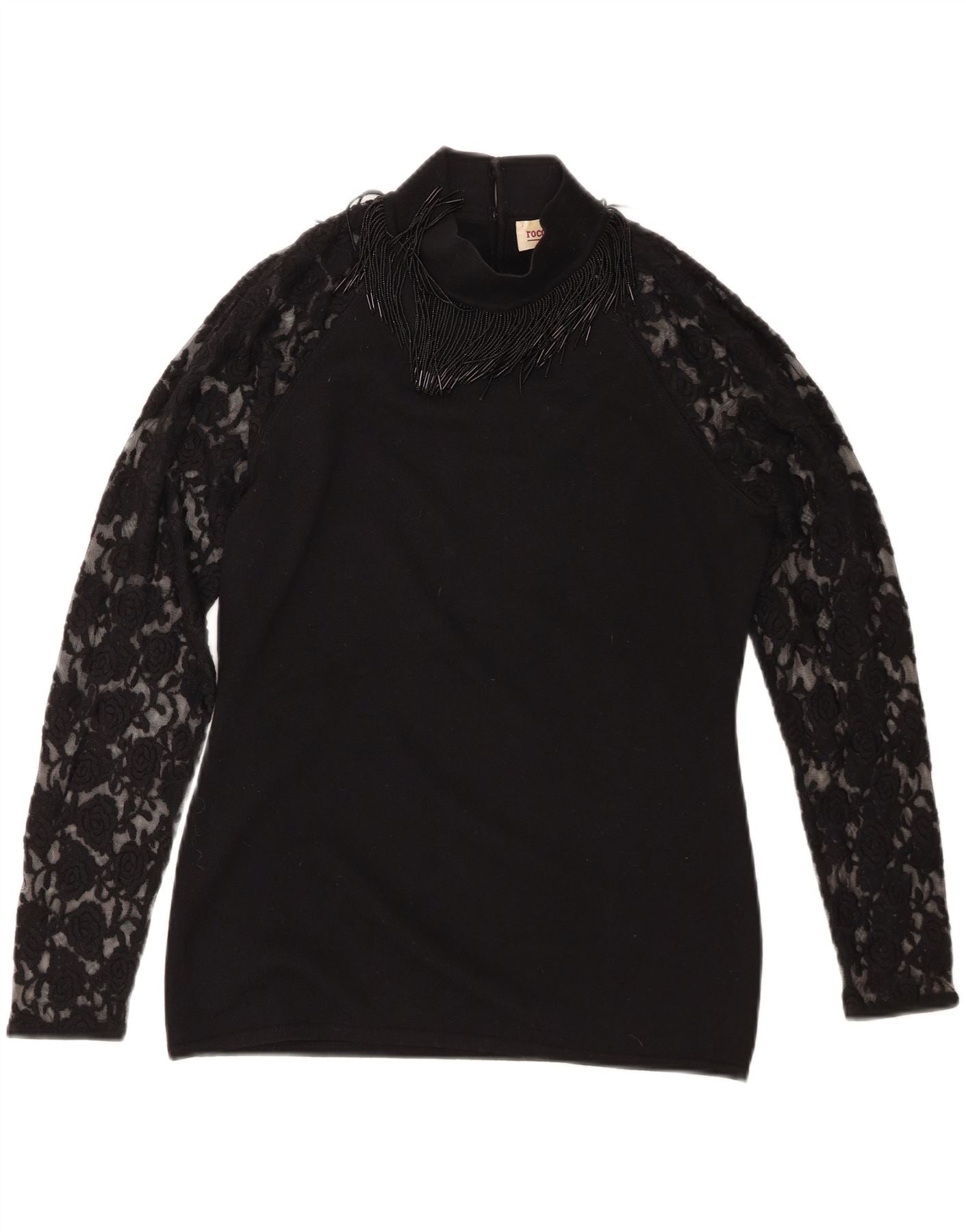 Roccobarocco Haut à manches longues pour femme UK 14 Laine mérinos noir moyen