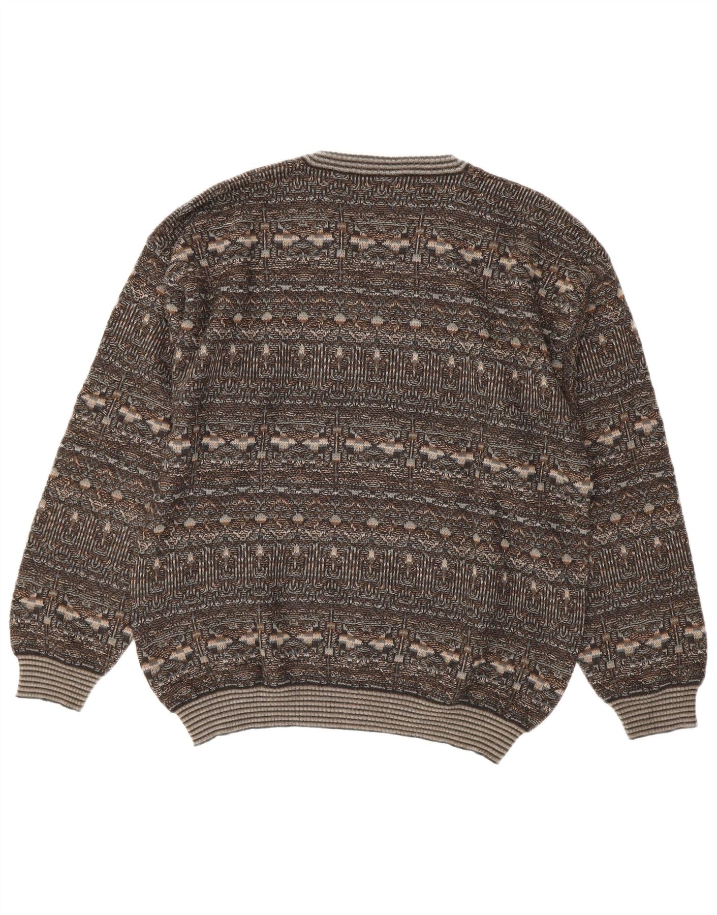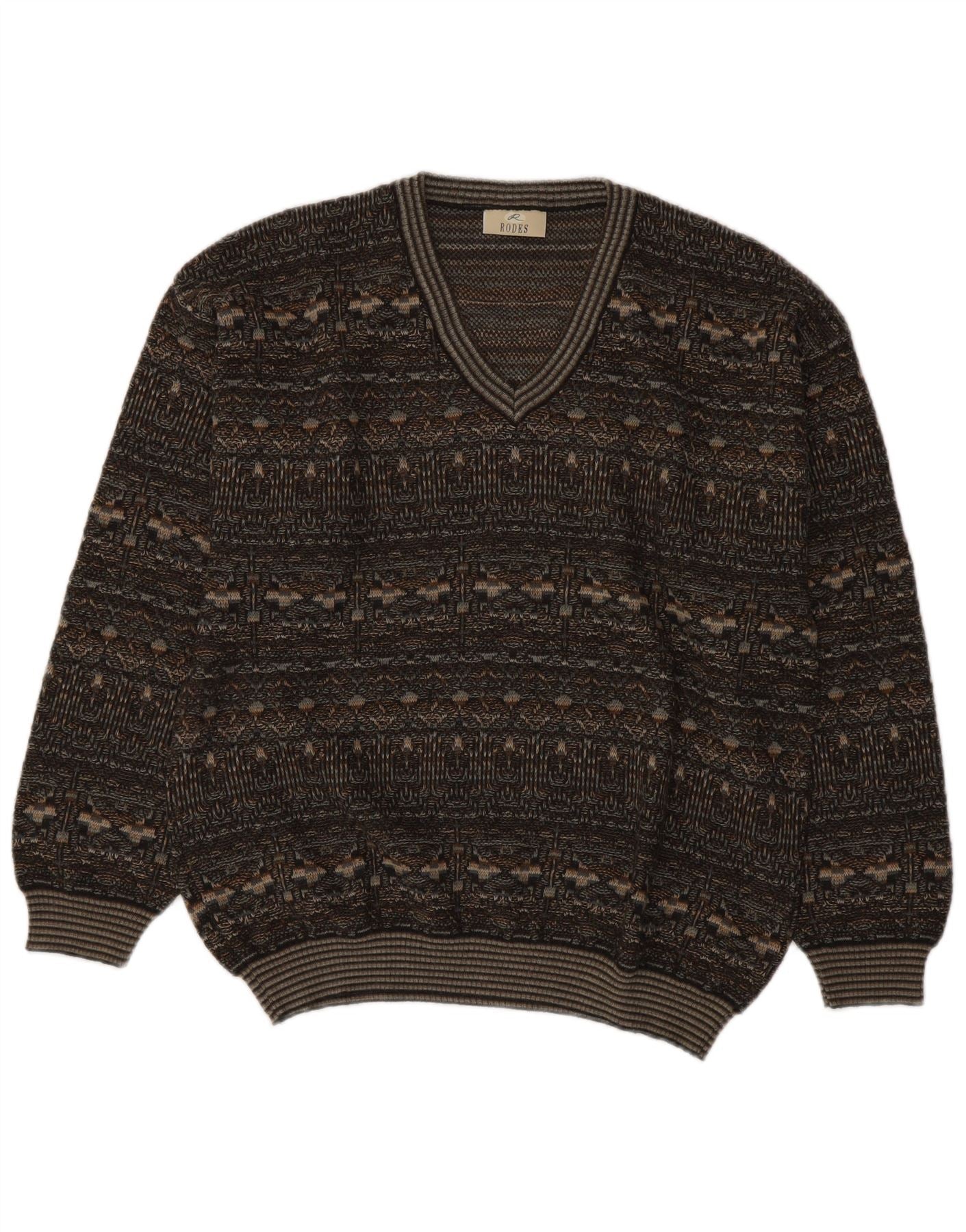 RODES Pull col V pour homme en laine vierge Fair Isle gris Taille L