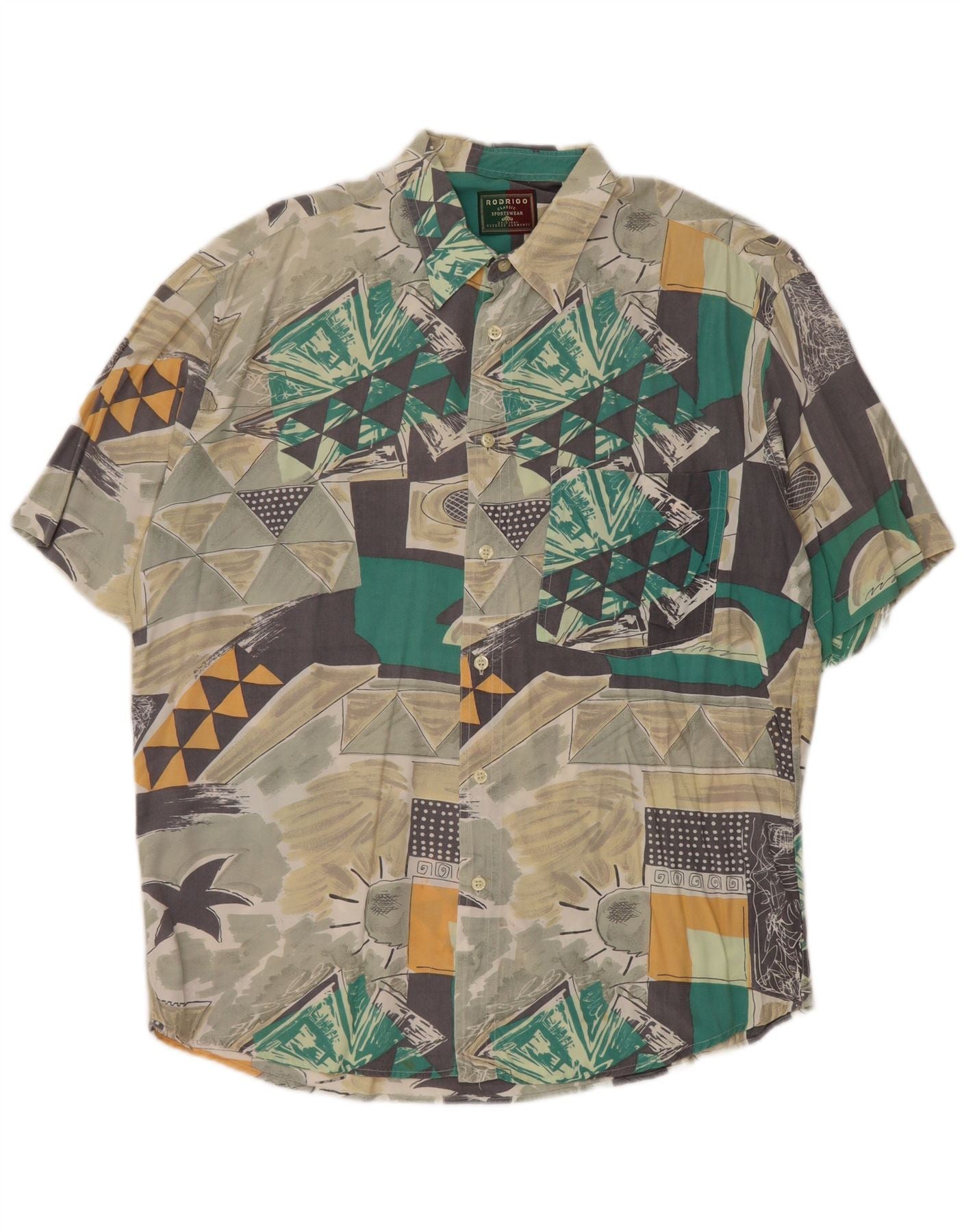 RODRIGO Chemise à manches courtes pour homme Taille 16 41 Grand motif géométrique multicolore