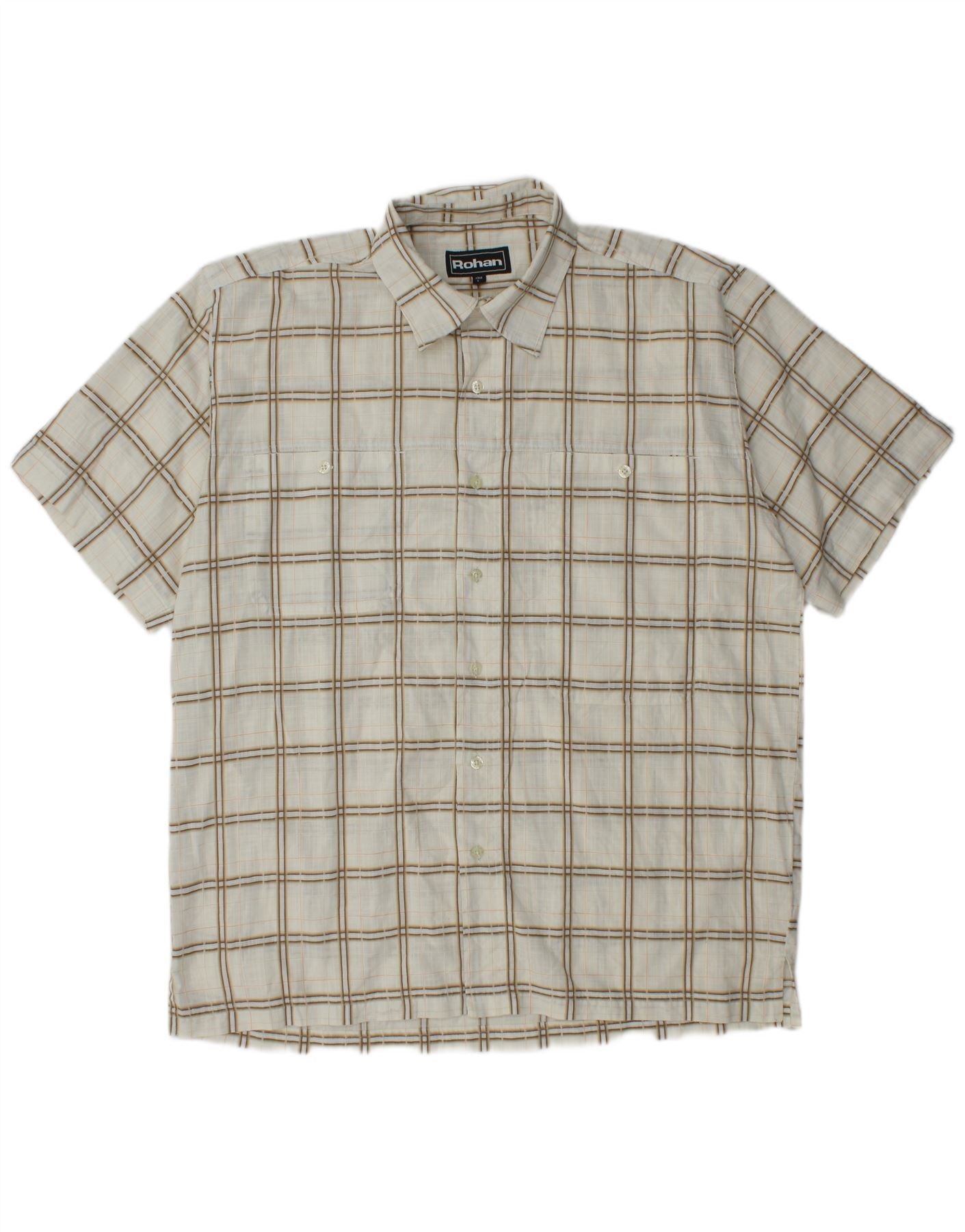 Rohan Chemise à manches courtes pour homme en polyester à carreaux blanc cassé