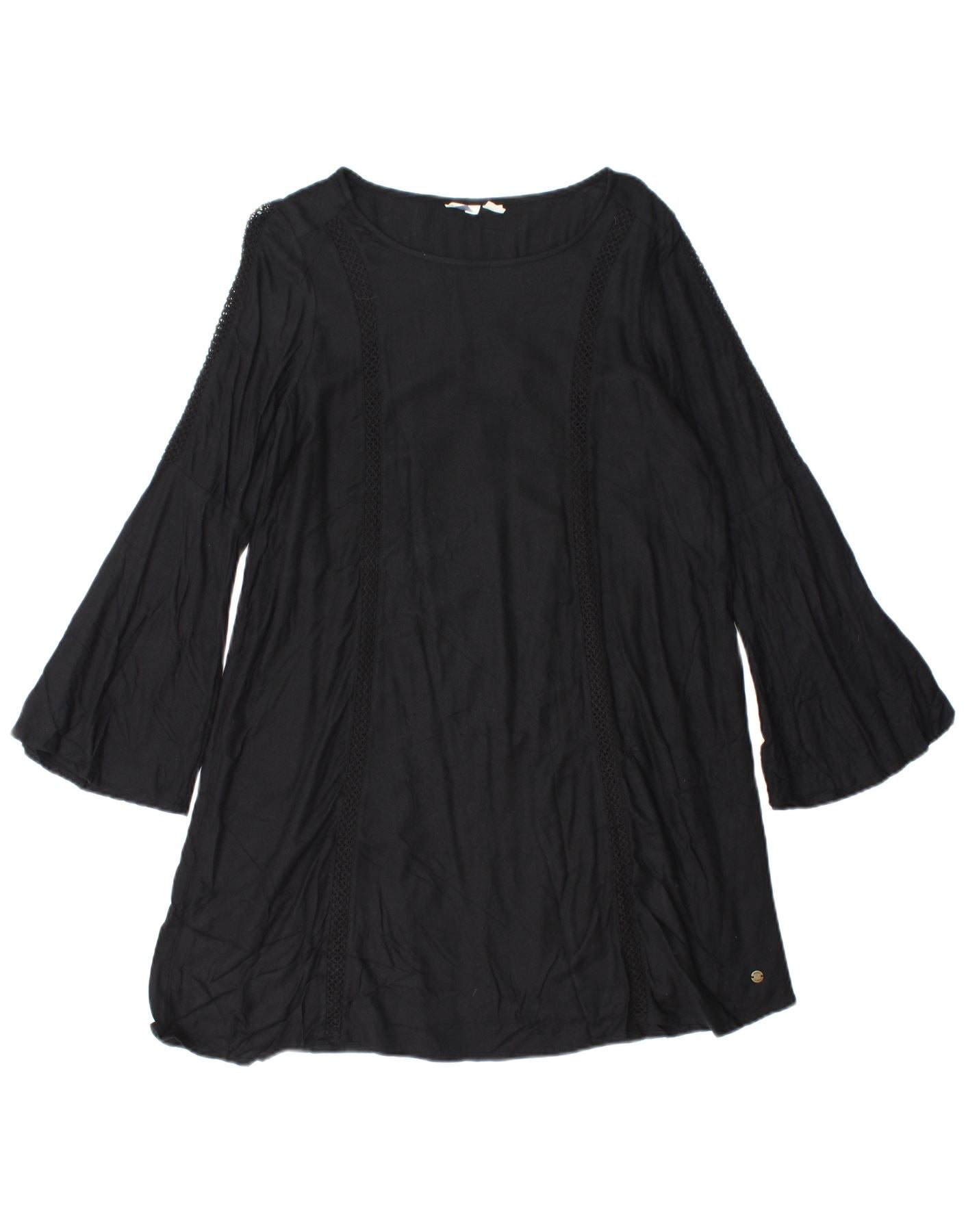 ROXY Robe trapèze à manches longues pour femme UK 10 Petit coton noir