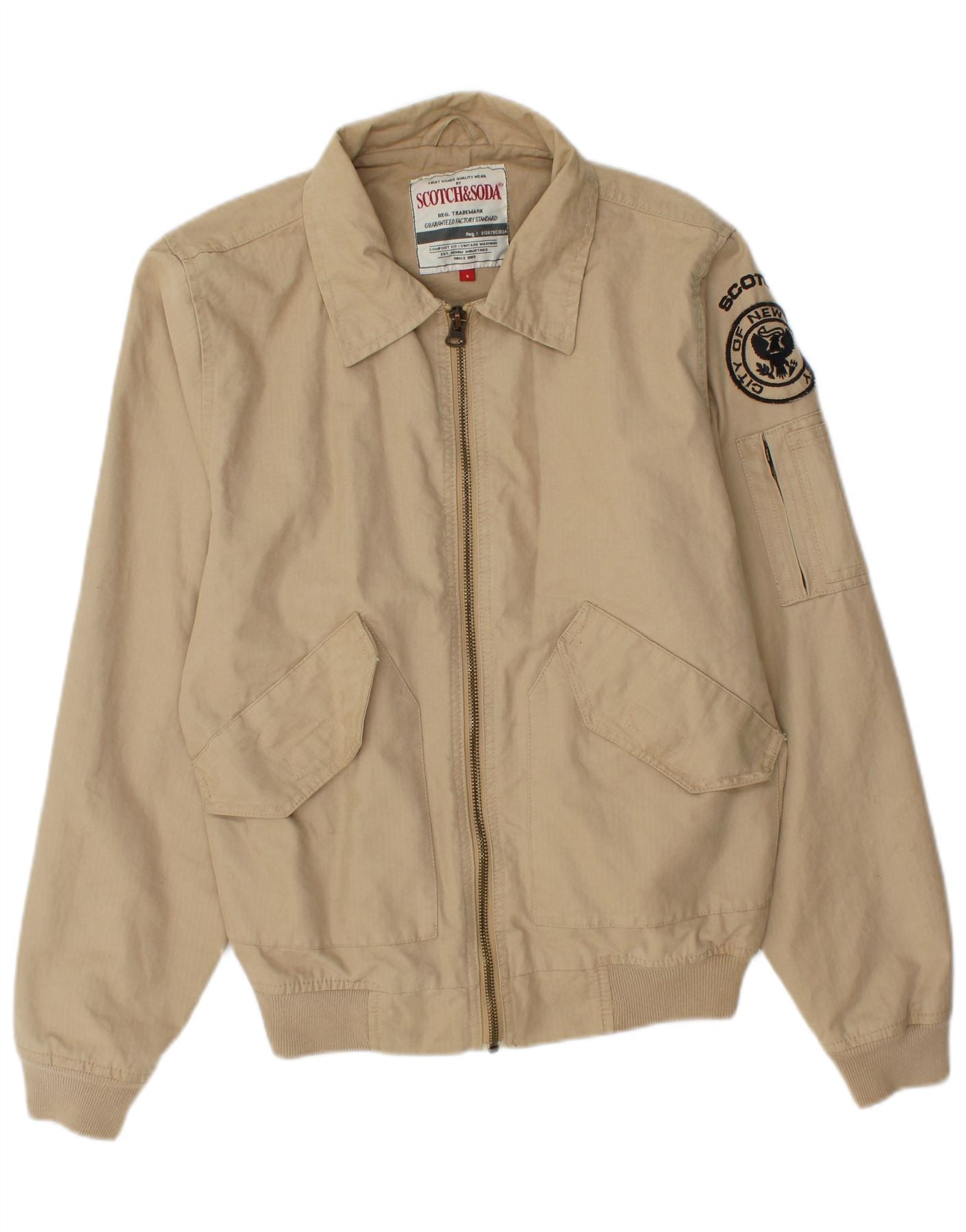 SCOTCH & SODA Veste Bomber Graphique Homme UK 36 Petit Coton Beige