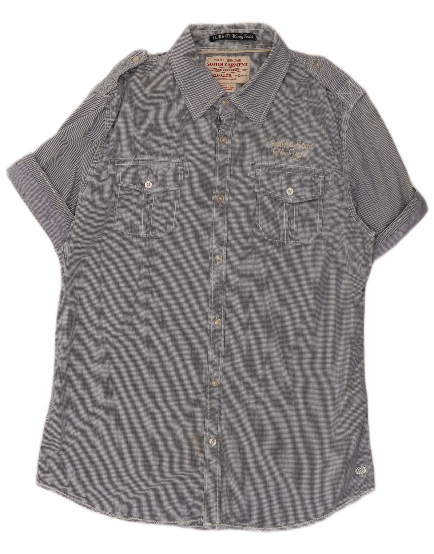 SCOTCH & SODA Chemise militaire à manches courtes pour homme en coton vichy bleu moyen