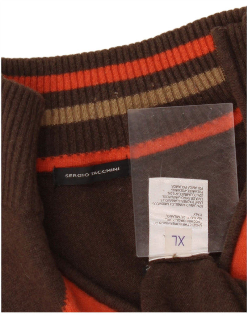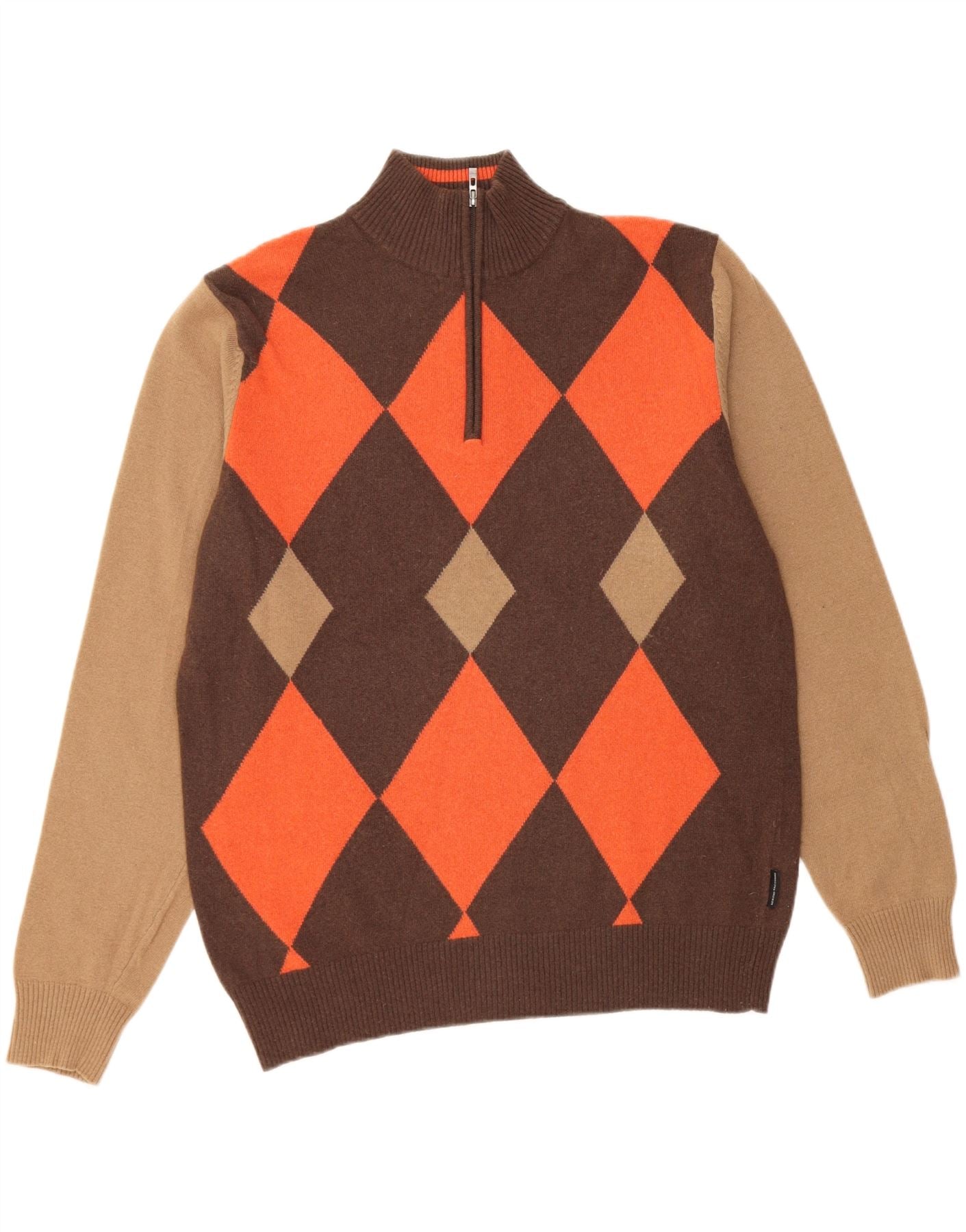 SERGIO TACCHINI Pull Col Zippé Homme XL Marron Argyle/Diamond Laine