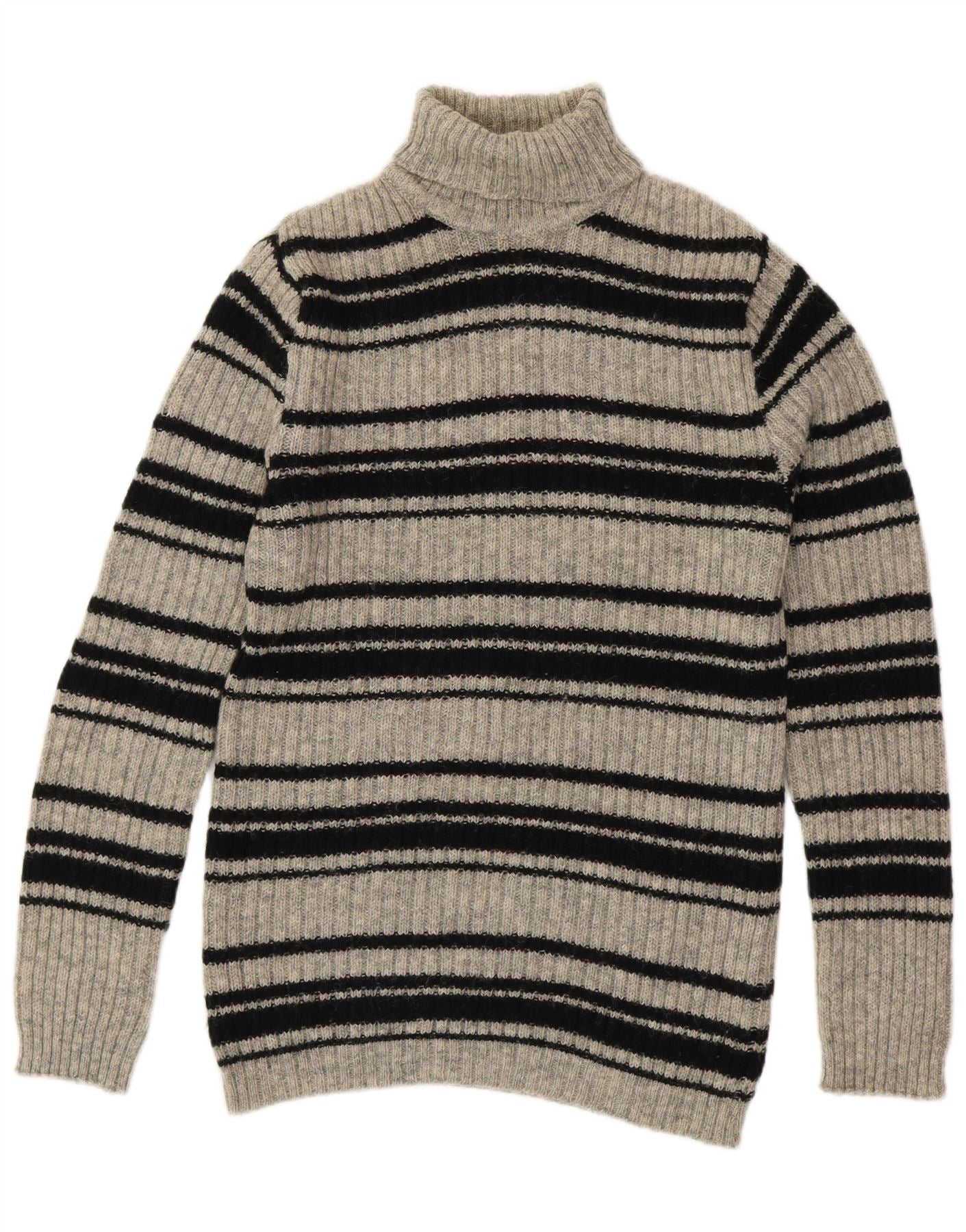 SHETLAND Pull col roulé pour femme UK 16 Grande laine rayée grise