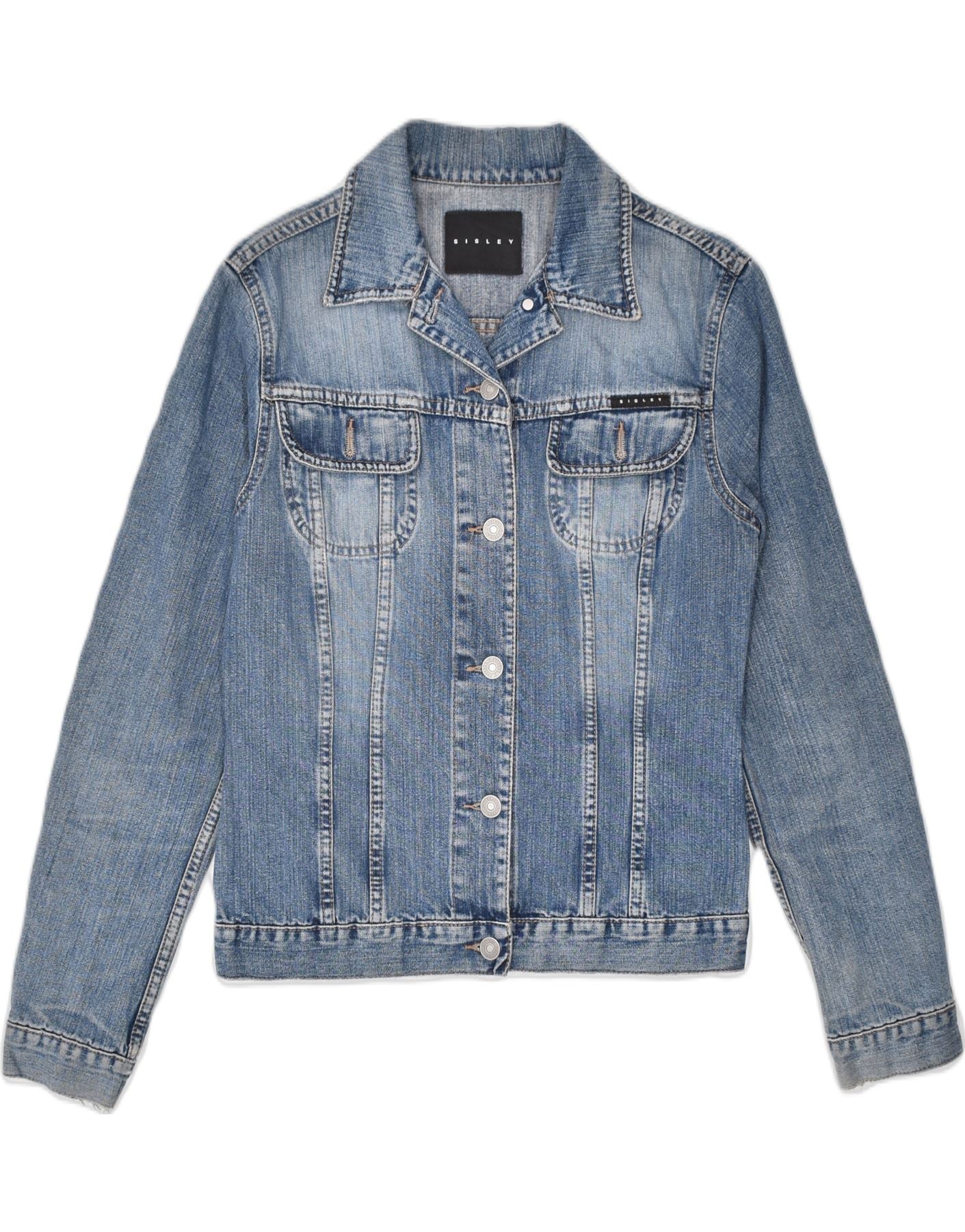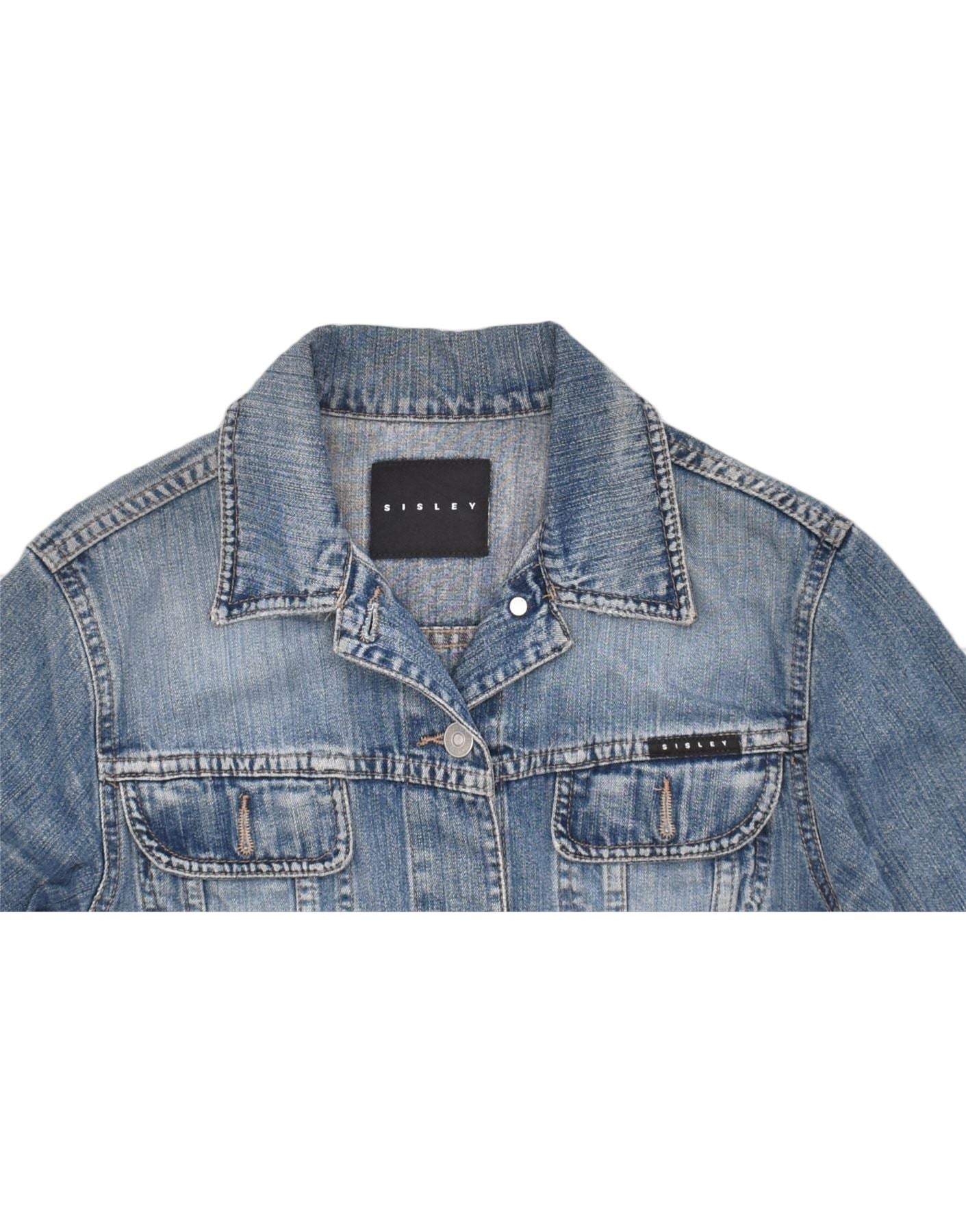 SISLEY Veste en Jean Femme UK 10 Petit Bleu Coton