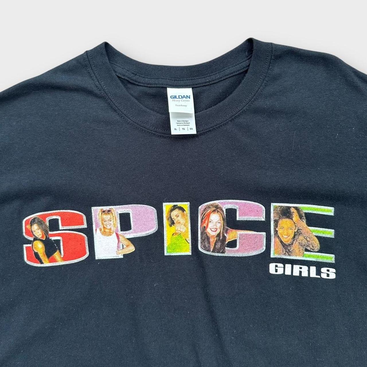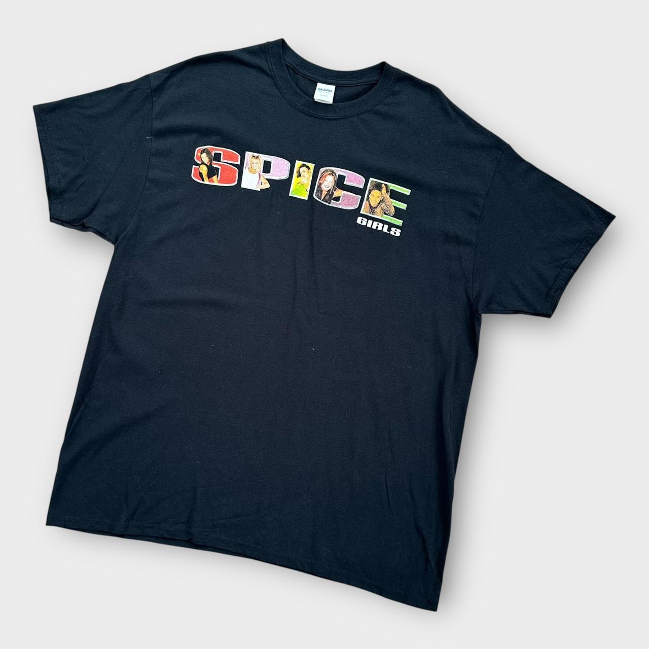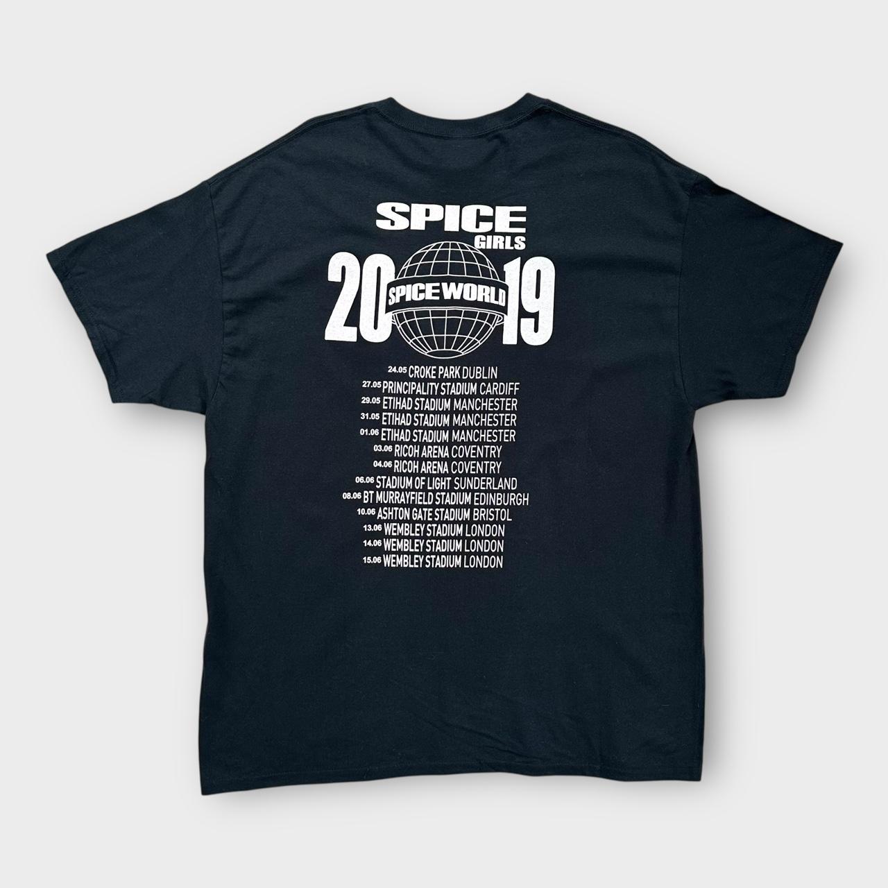 T-shirt musical de la tournée britannique 2019 "spic world" des Spice Girls en noir avec imprimé graphique sur la poitrine et au dos sur une étiquette Gildan