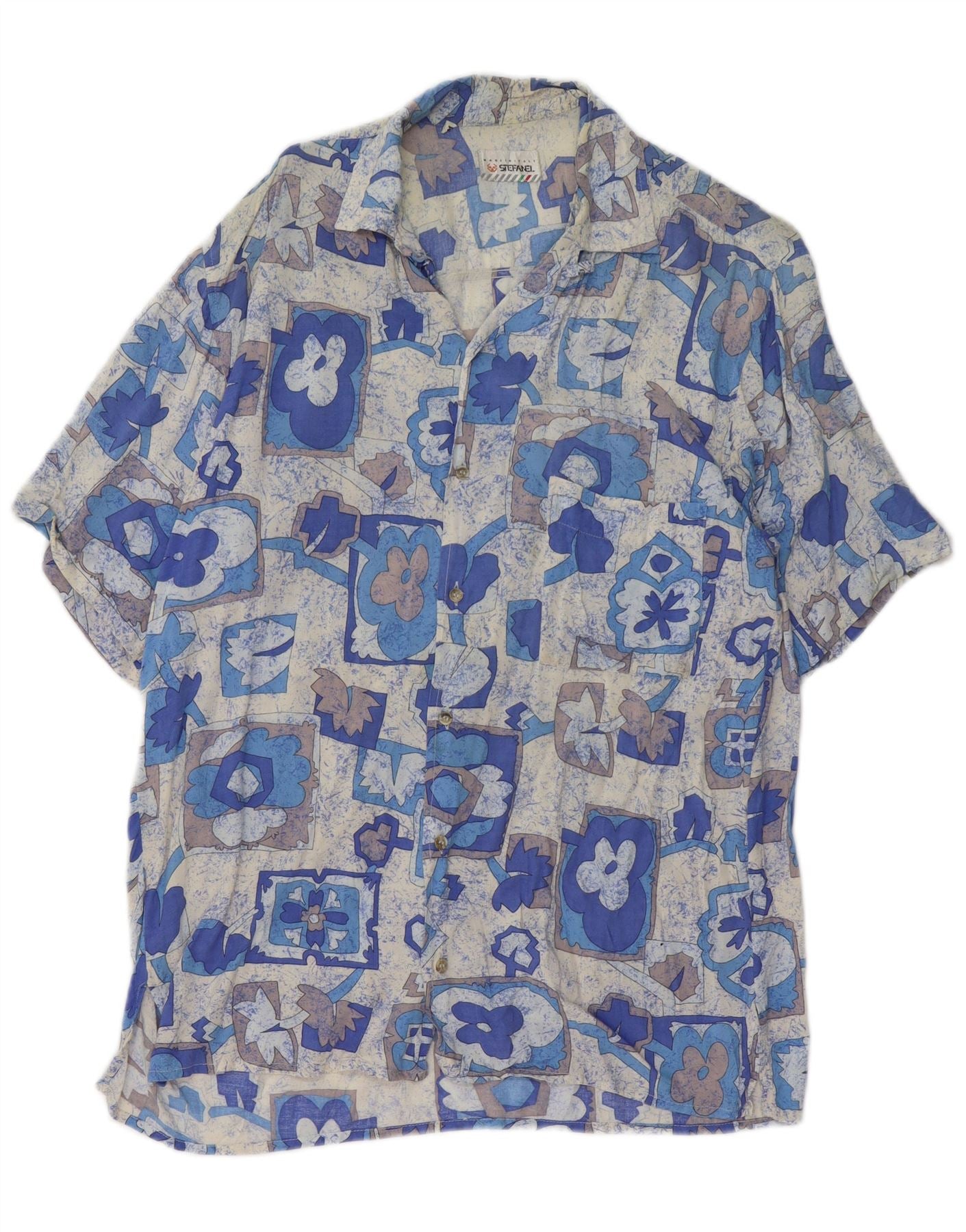 STEFANEL Chemise à Manches Courtes Homme Bleu Moyen Patchwork Viscose