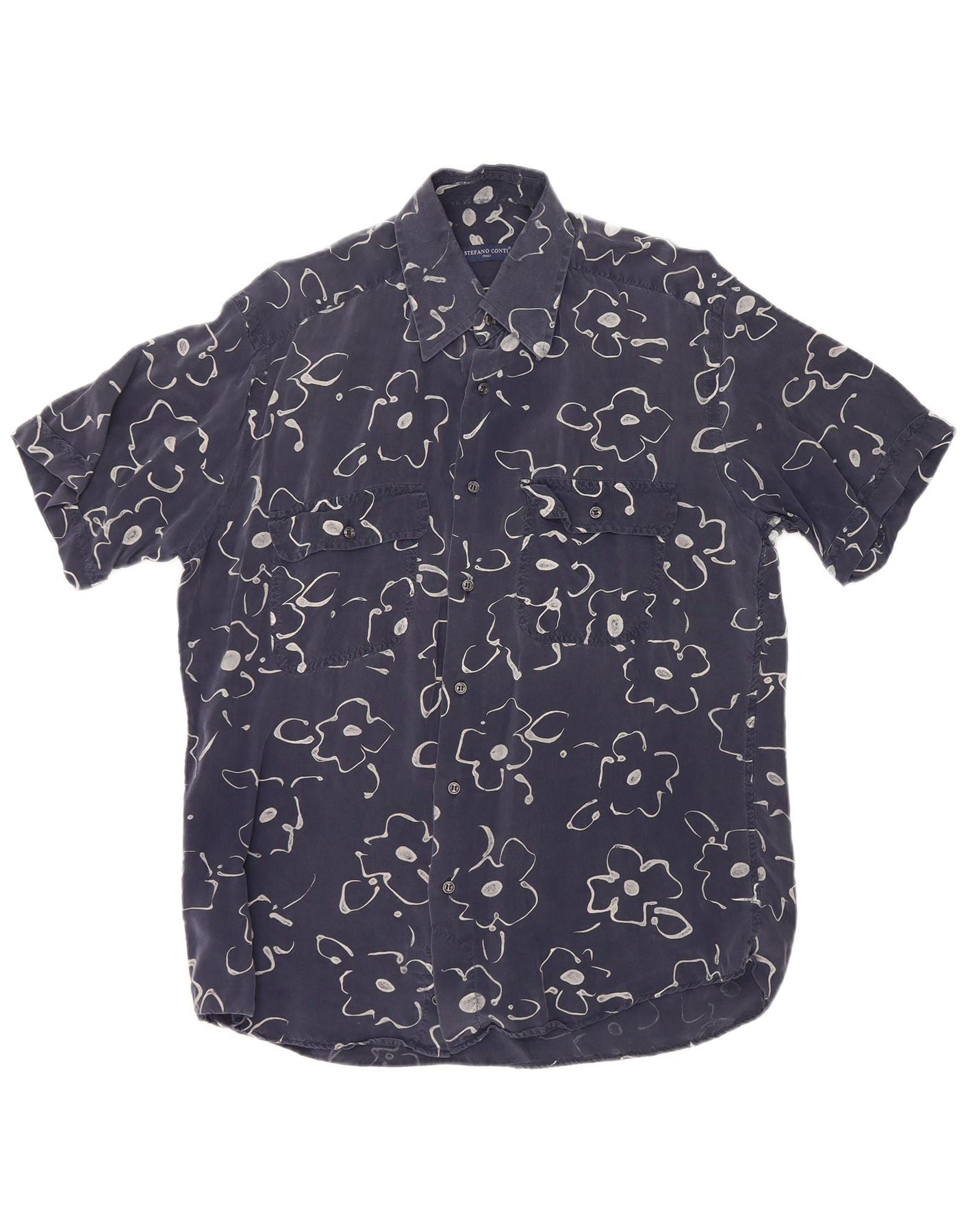 STEFANO CONTI Chemise Homme Taille 15 1/2 39 Bleu Marine Moyen Floral