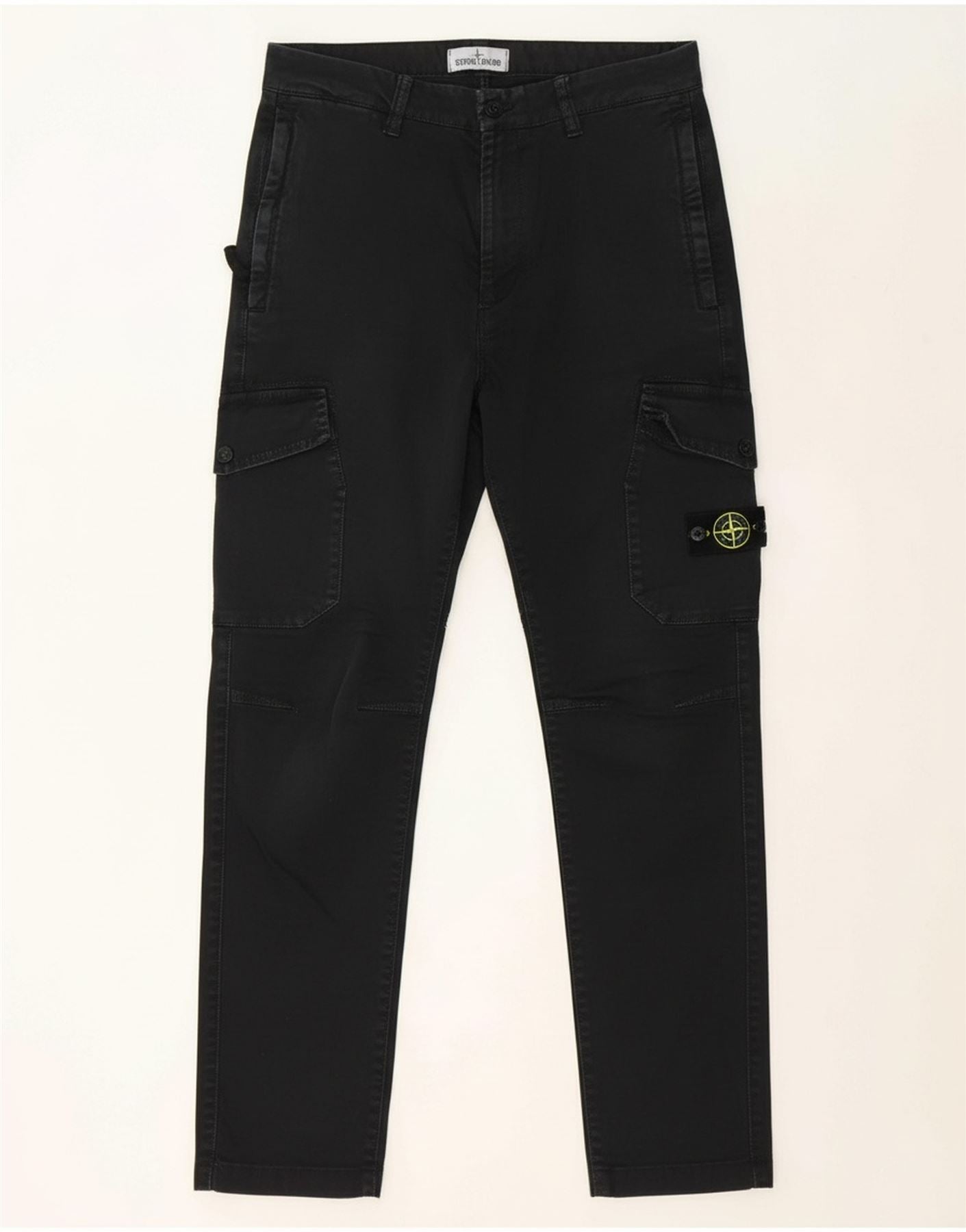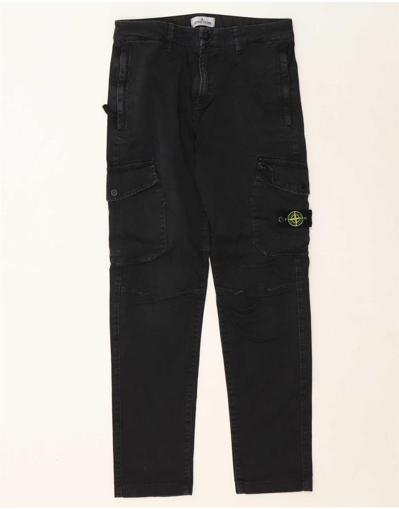 STONE ISLAND Boys Straight Cargo Trousers 13-14 Years W30 L29 Black Cotton