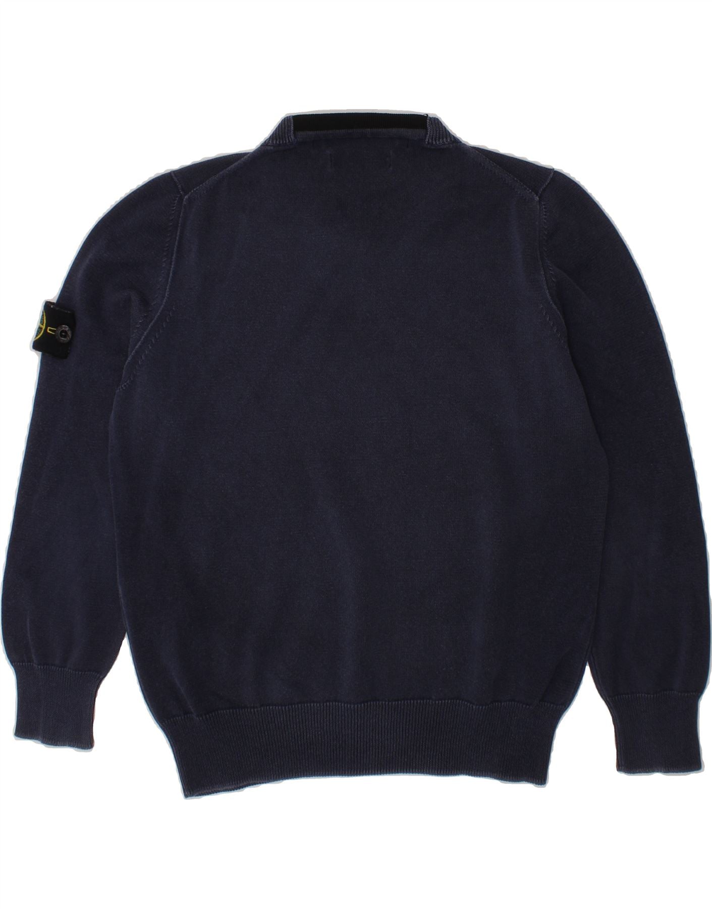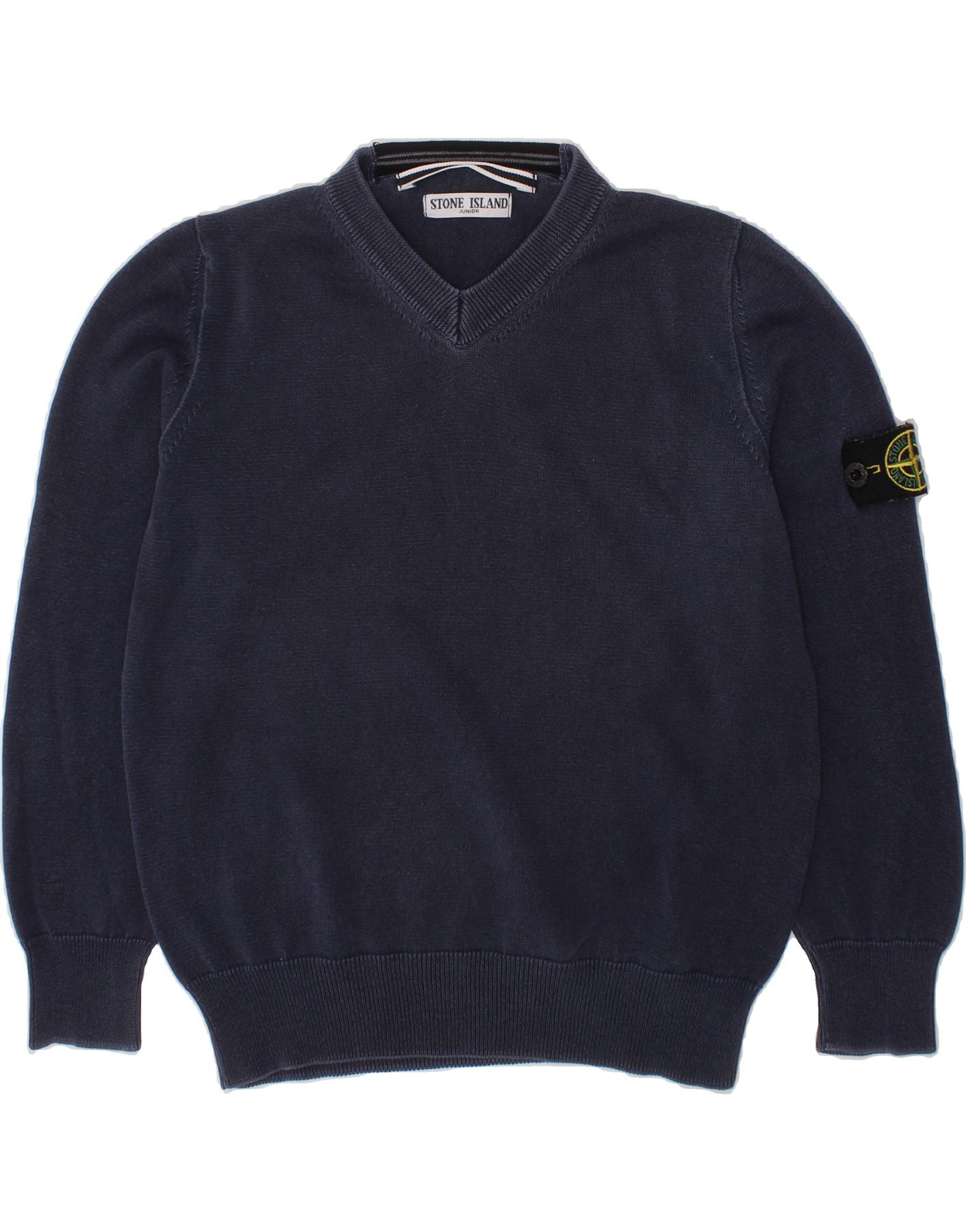 STONE ISLAND Boys V-Neck Jumper Sweater 7-8 Years Navy Blue Cotton