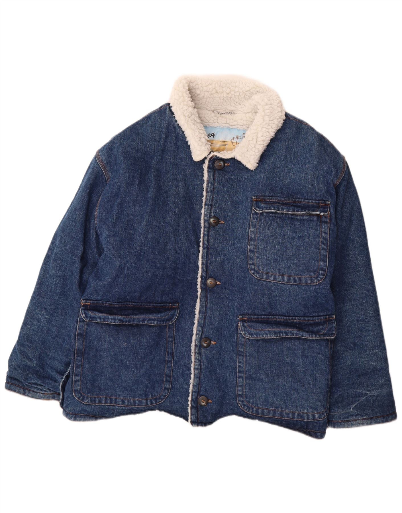 STRATOS Veste Sherpa en Jean pour Homme UK 42 XL Bleu Coton