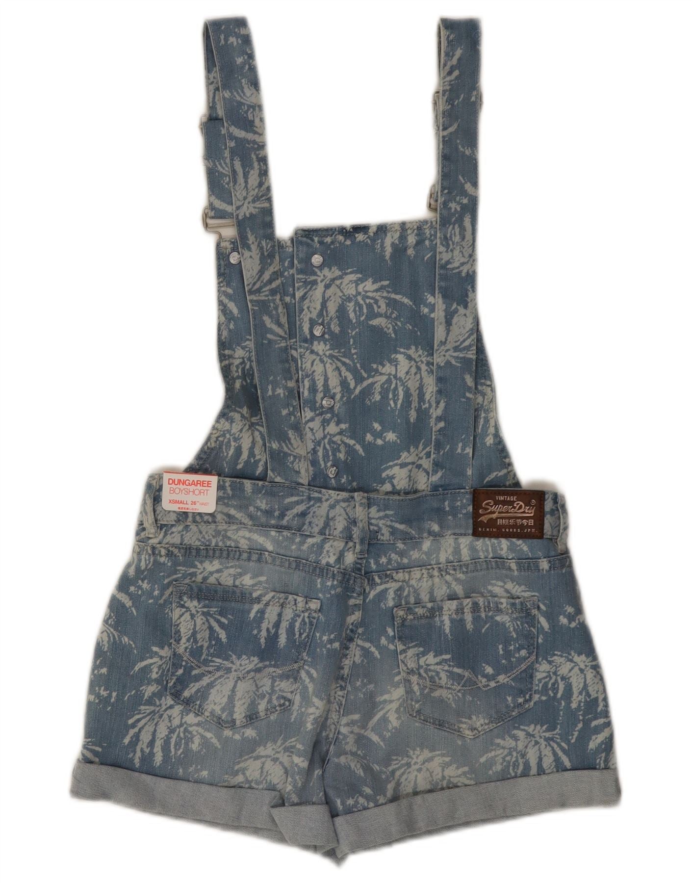SUPERDRY Salopette Short en Jean Fille 11-12 ans XS Bleu Floral Coton