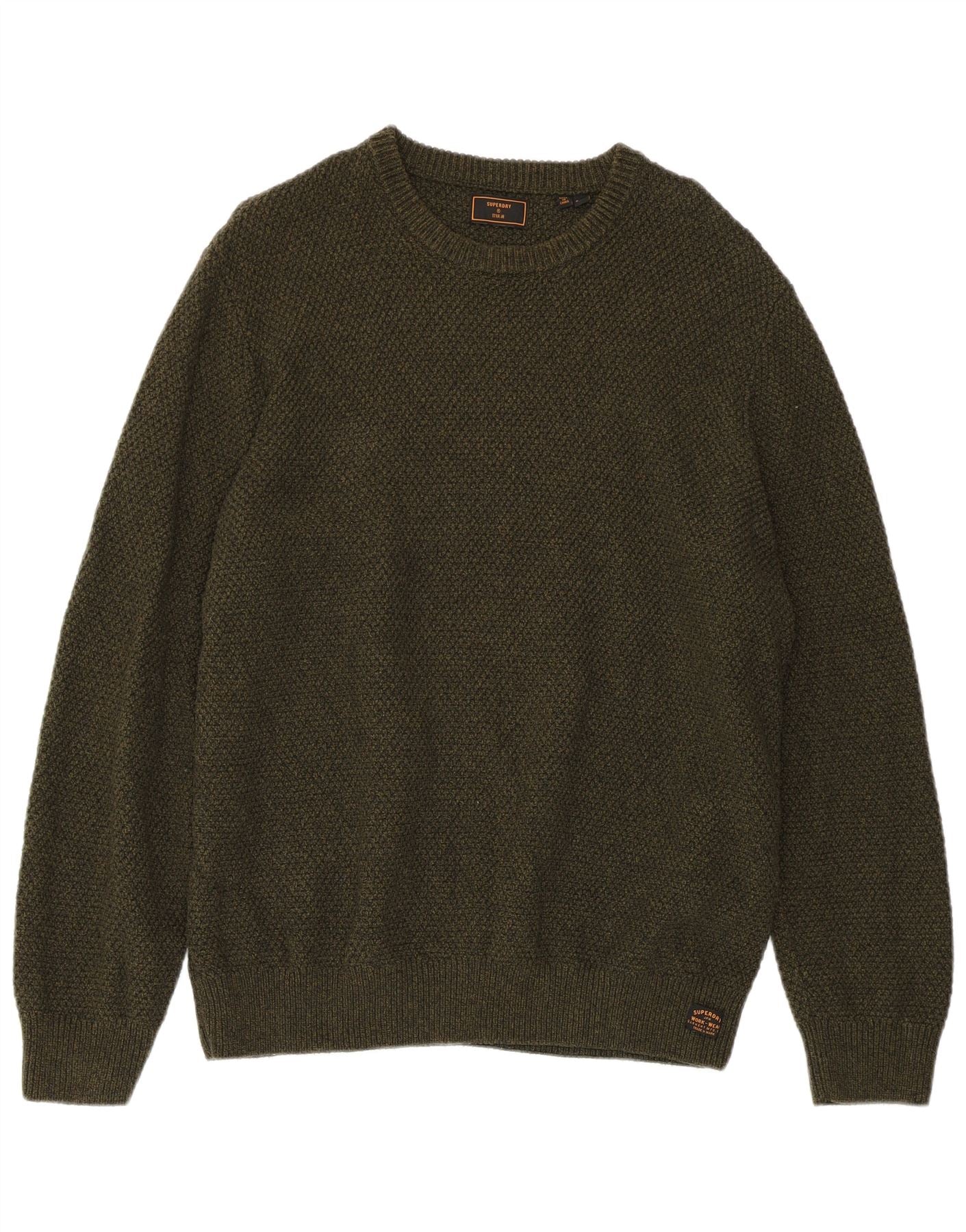 SUPERDRY Pull col rond homme 2XL Kaki Coton
