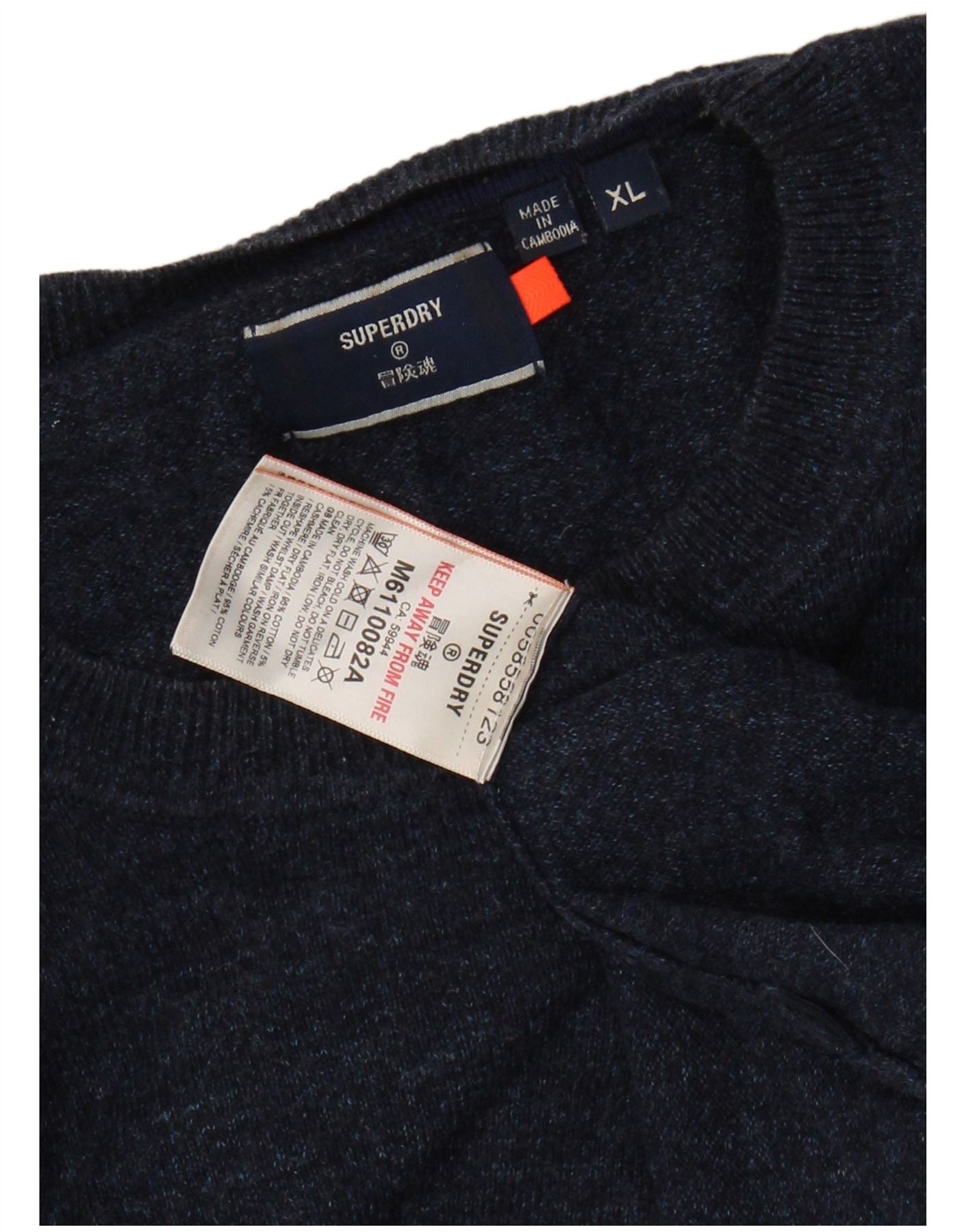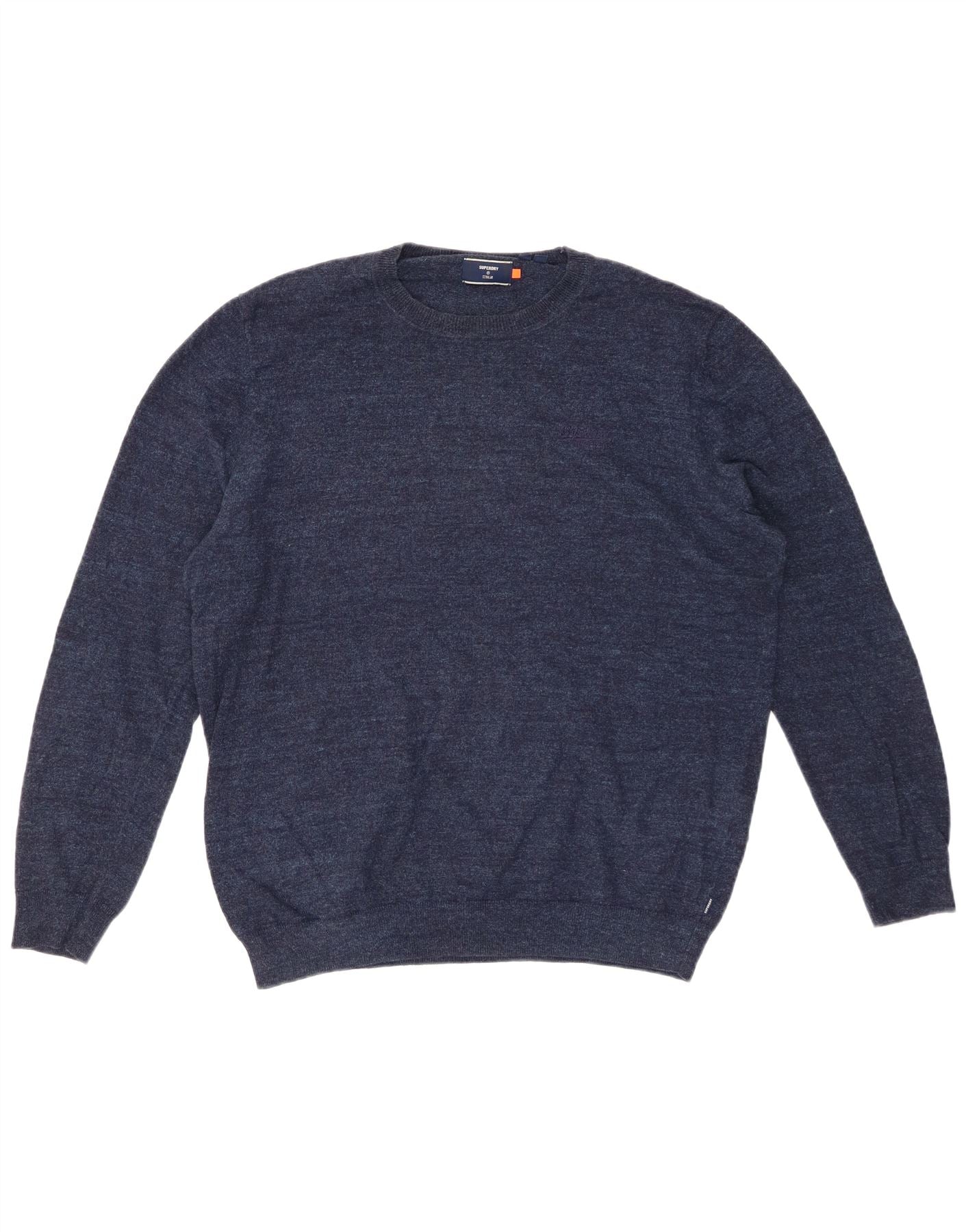 SUPERDRY Pull col rond homme XL Bleu marine Coton