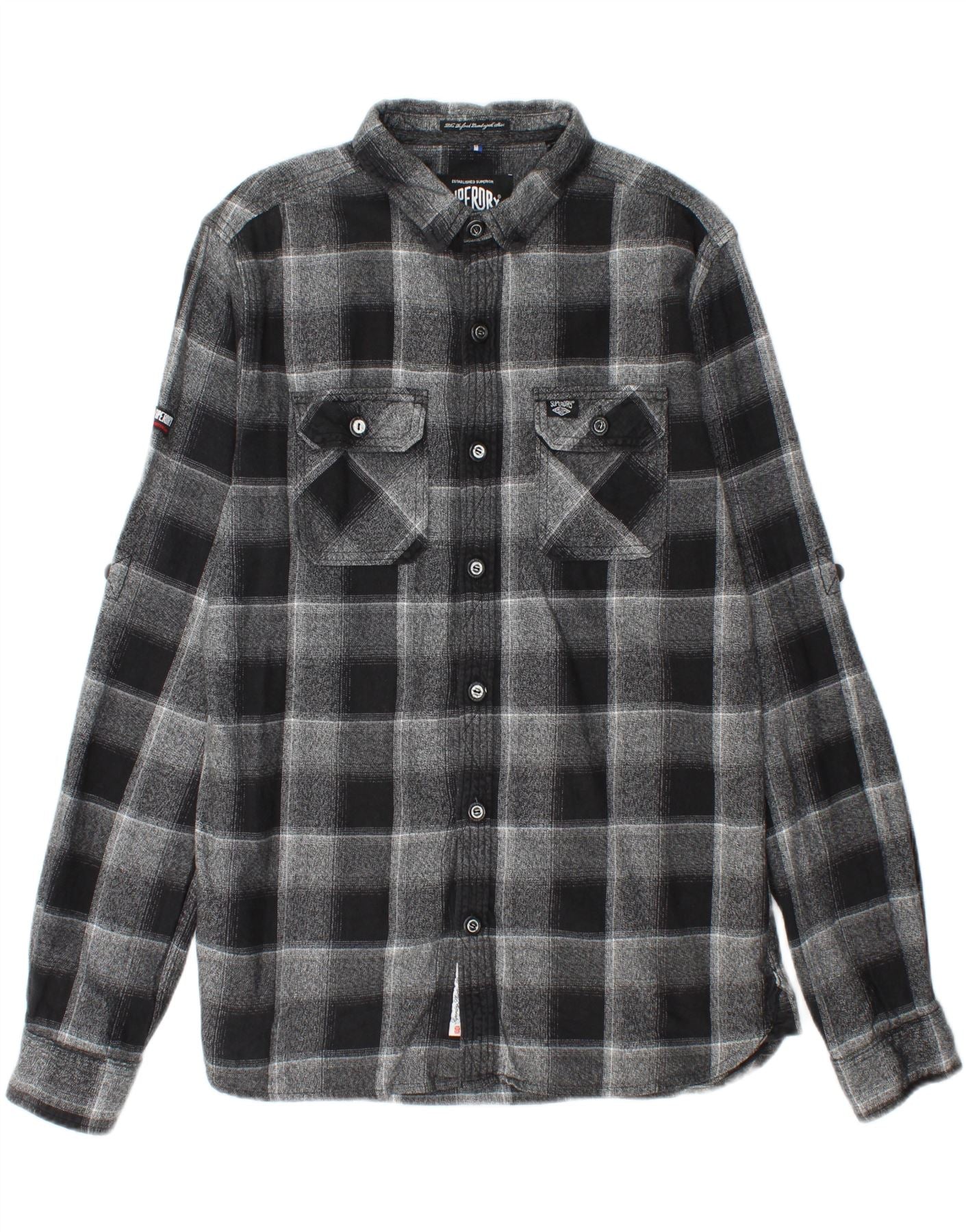 SUPERDRY Chemise Flanelle Homme XL Gris Plaid Coton