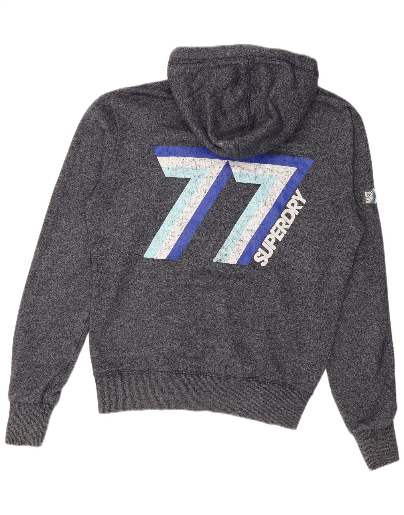 SUPERDRY Pull à capuche zippé graphique pour homme en coton bleu marine moyen