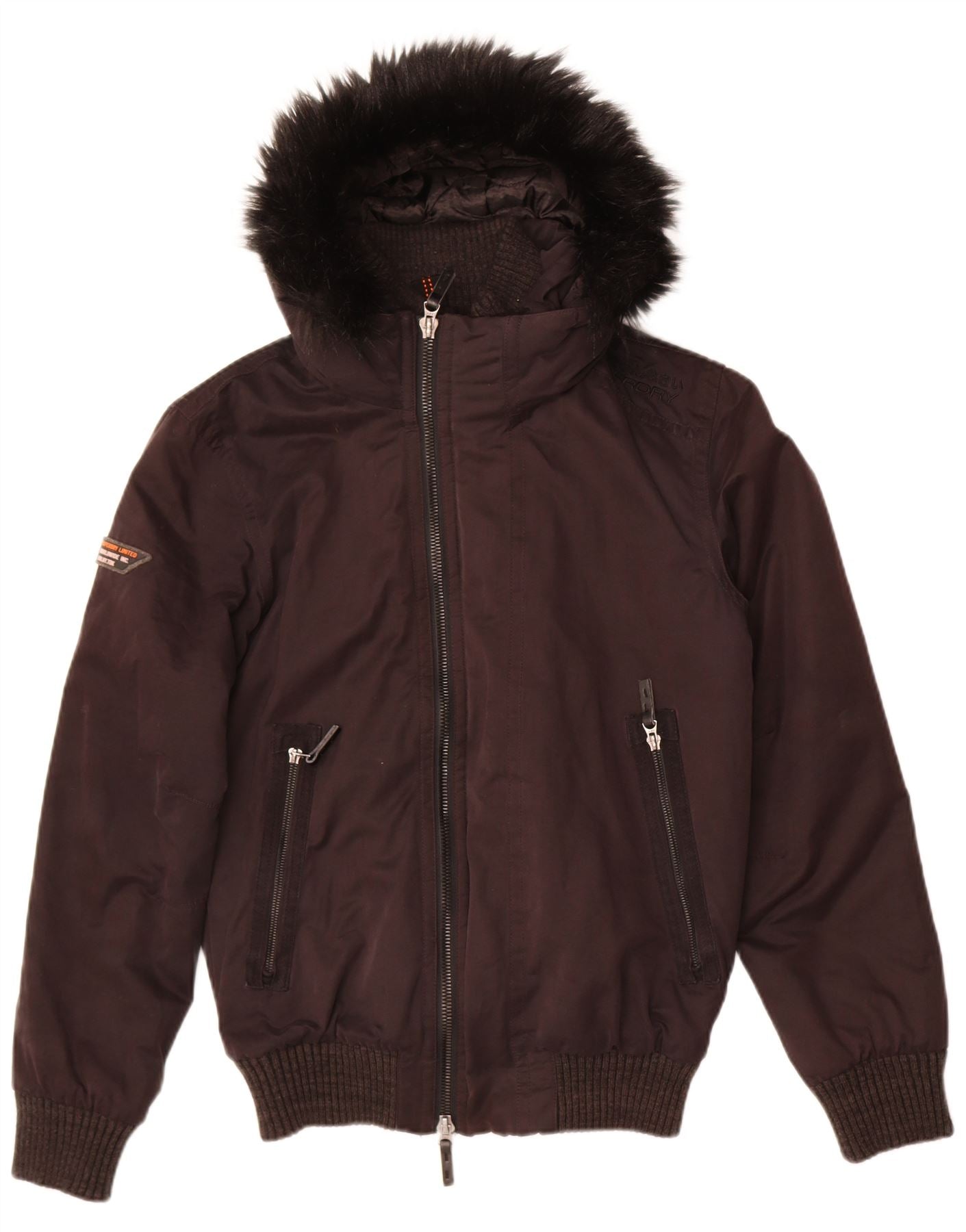 - Description de l'IA : Ce blouson aviateur Superdry pour hommes est confectionné en microfibre noire, offrant une finition lisse et rembourrée. Il présente un col montant et une fermeture zippée sur toute la longueur. Les manches longues se terminent par des poignets côtelés assortis à l'ourlet côtelé. Une capuche proéminente avec une bordure en fausse fourrure ajoute chaleur et style. Plusieurs poches zippées offrent un rangement pratique. La coupe régulière assure un port confortable.