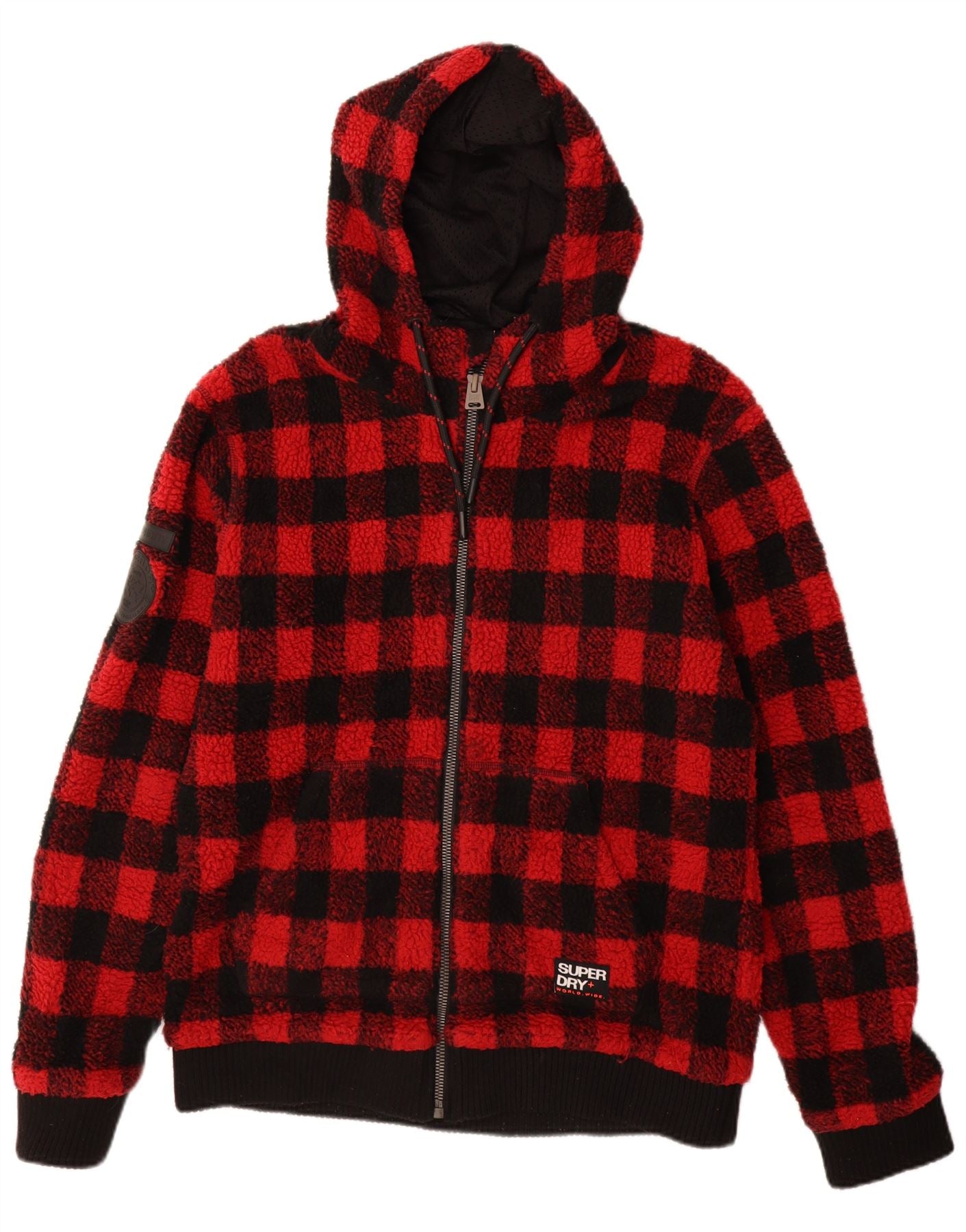 Superdry Veste polaire à capuche pour homme UK 44 2XL Rouge Vichy Polyester