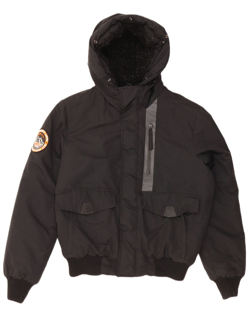 SUPERDRY Veste bomber rembourrée à capuche pour homme UK 40 Large Noir Nylon